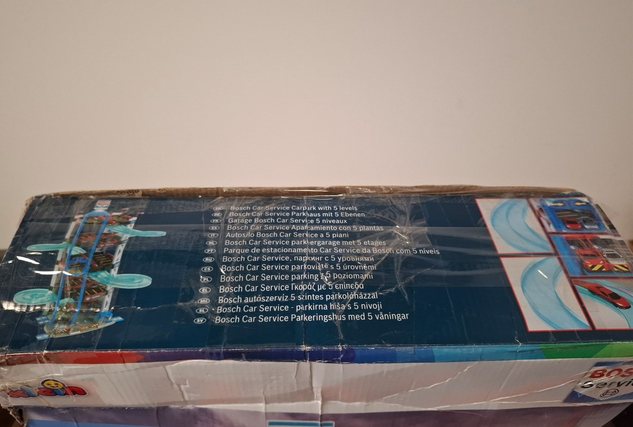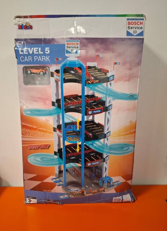 - 5-poziomowy parking dla samochodzików oraz 2 samochodziki z serii Bosch Service od Theo Kleina.