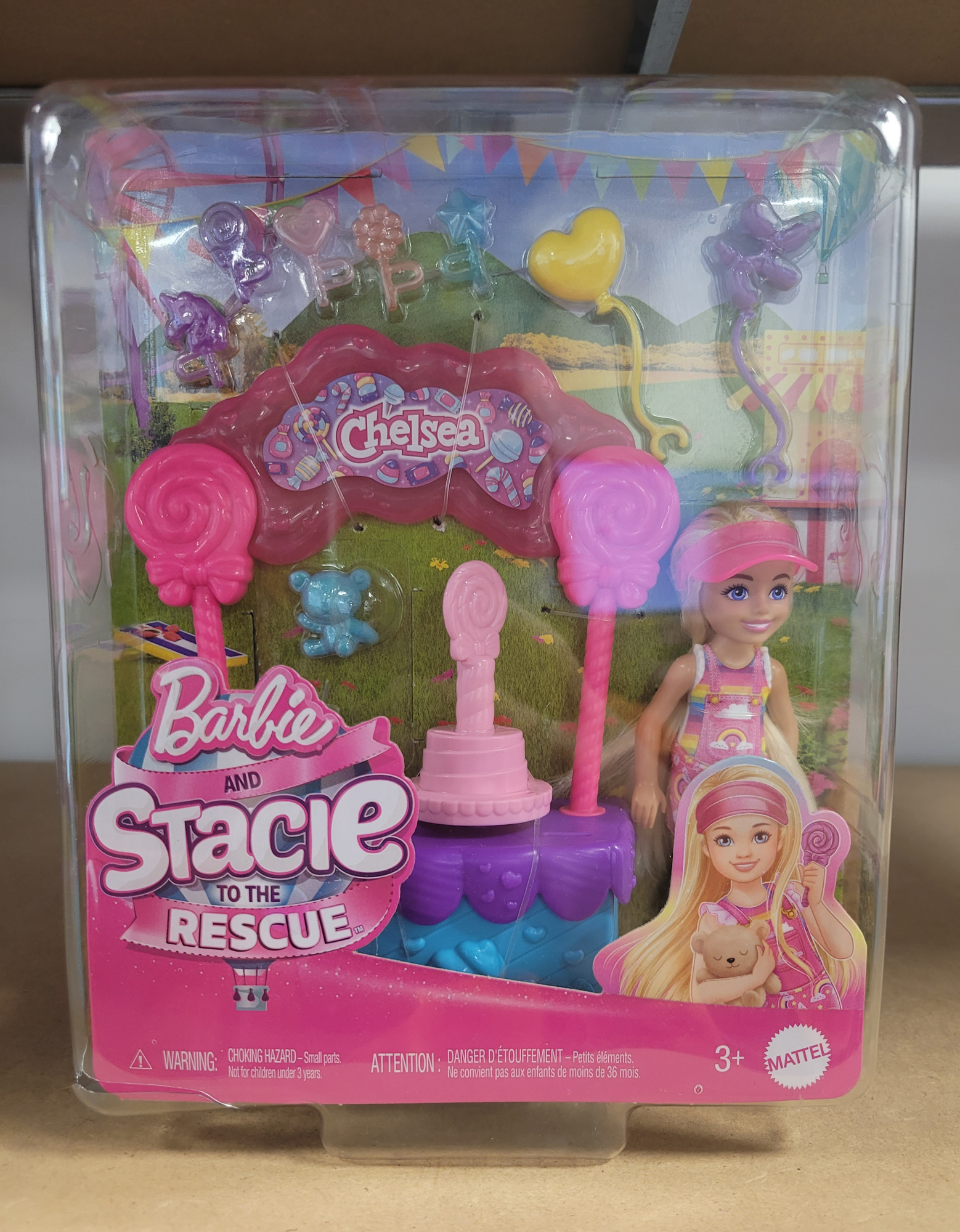 OUTLET Barbie Chelsea lalka blondynka zestaw stoisko z lizakami USZKODZONE OPAKOWANIE