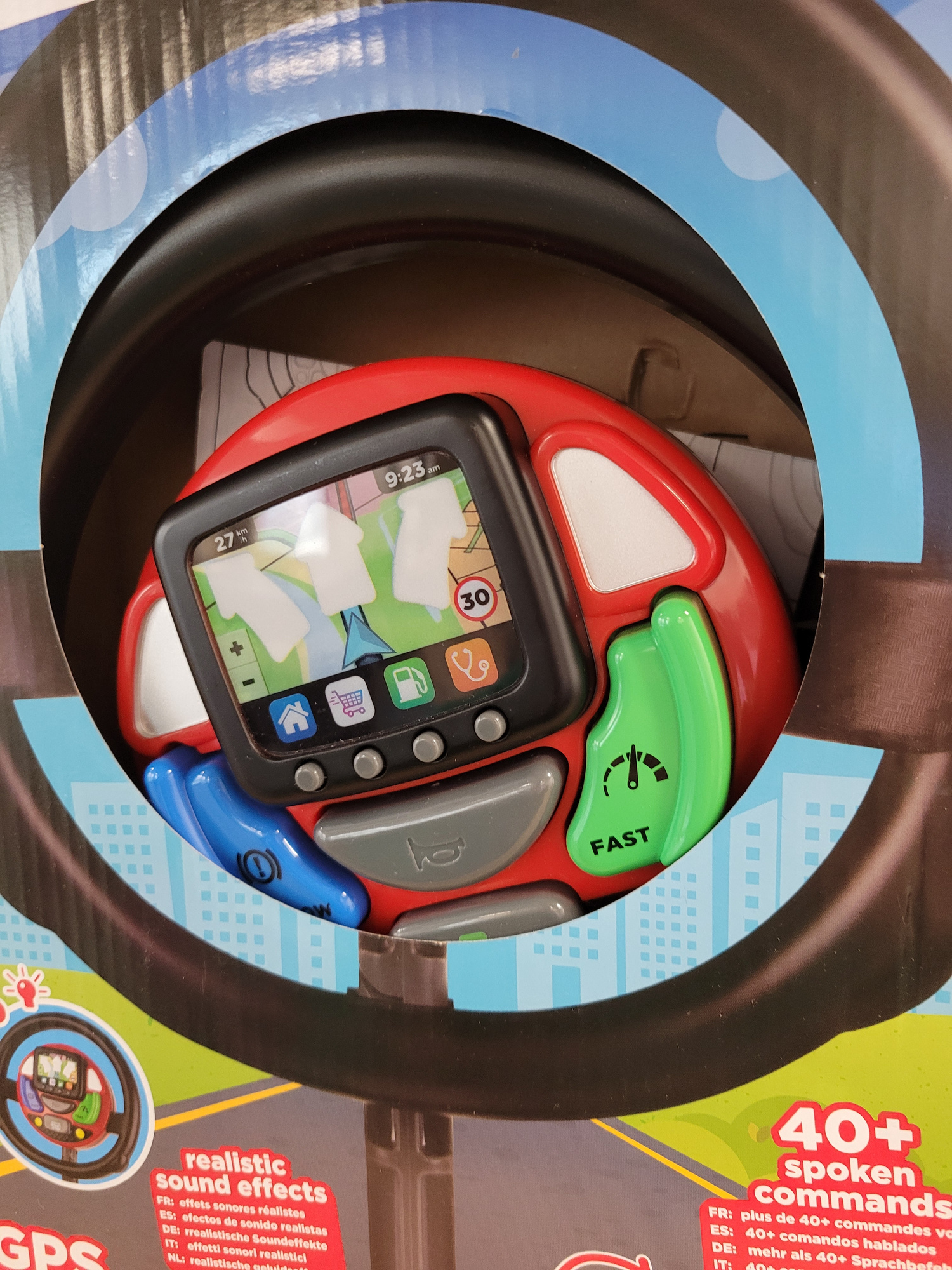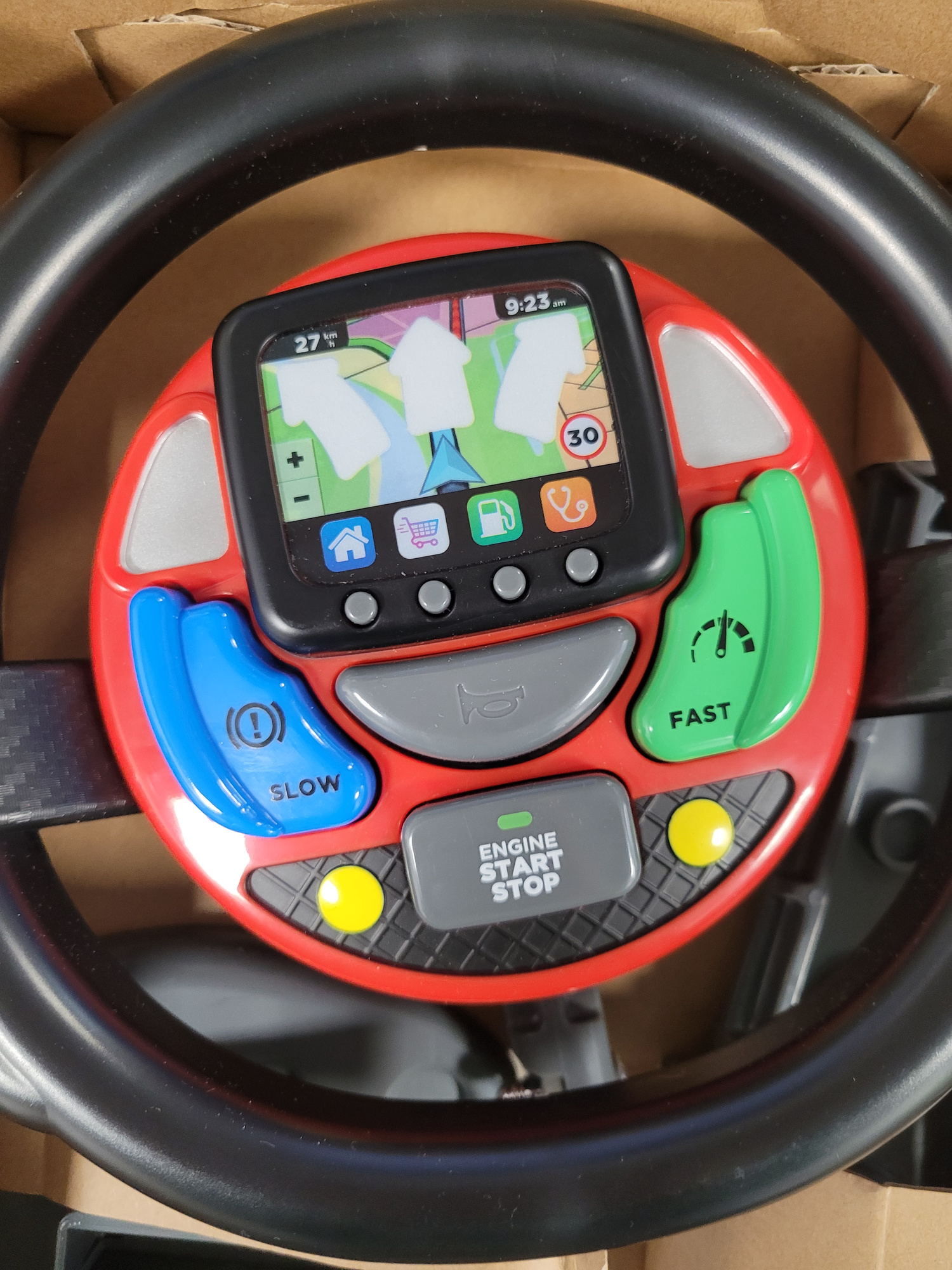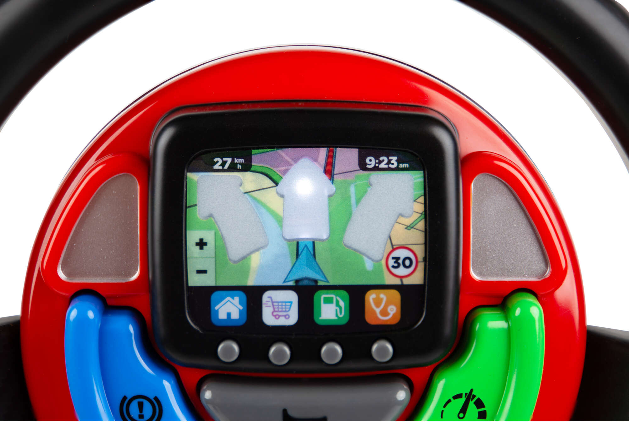 Kierownica GPS Steering Wheel wyposażona została w ponad 40 instrukcji głosowych (angielska wersja językowa), realistyczne dźwięki klaksonu i pracy silnika samochodu, rozpoznawanie skrętów w lewo i w prawo, a także możliwość wyboru celu podróży. Wystarczy, że dziecko wybierze, dokąd chce jechać, a kierownica będzie wydawać głosowe polecenia, podświetlając na ekraniku właściwy kierunek jazdy.