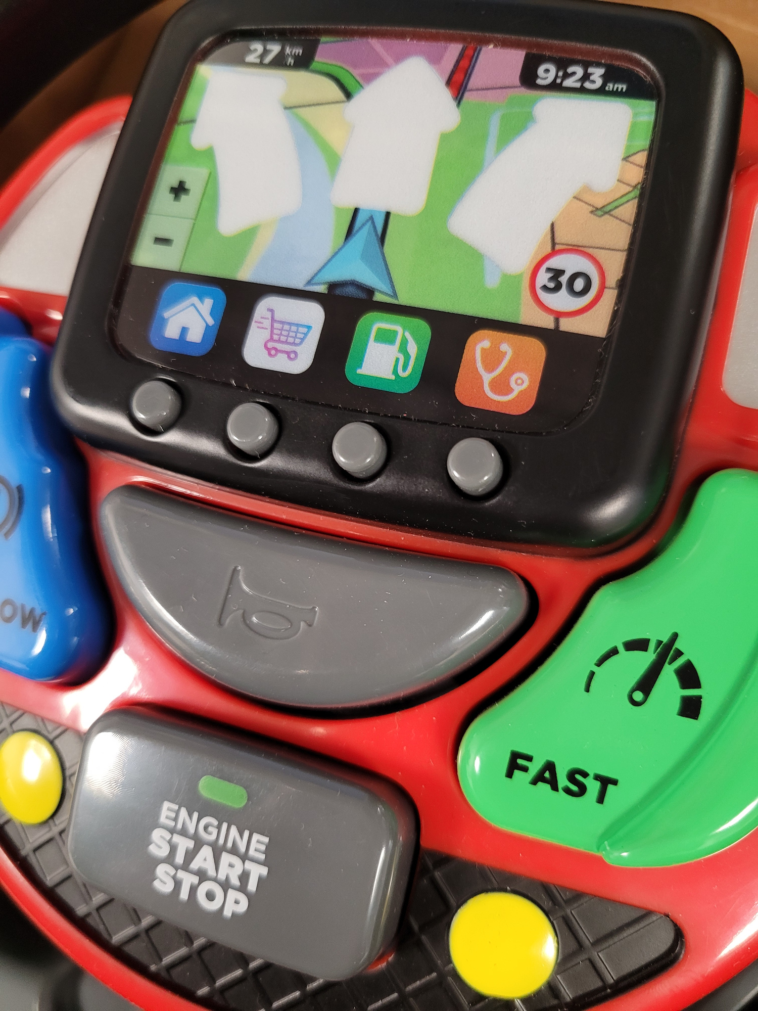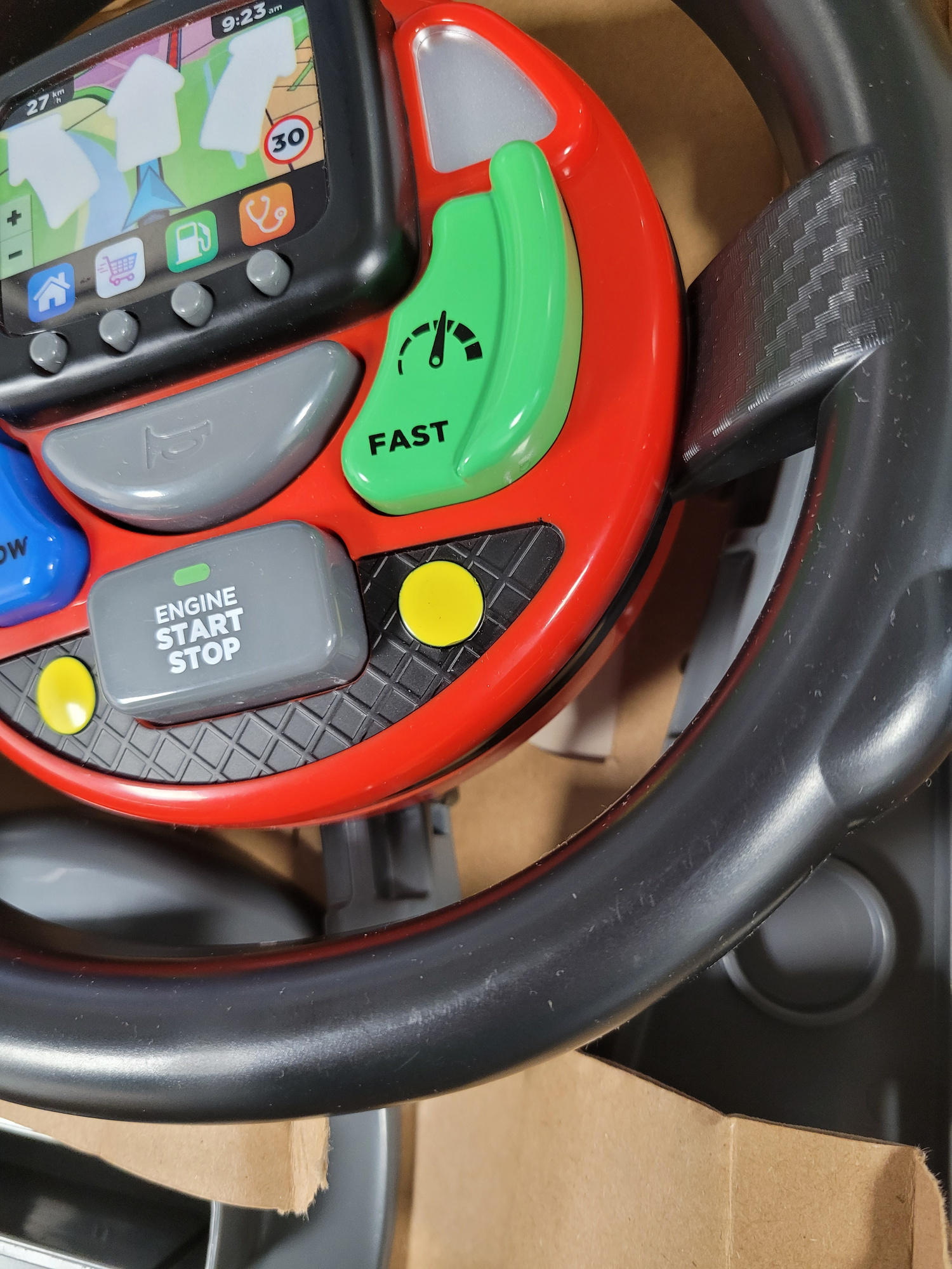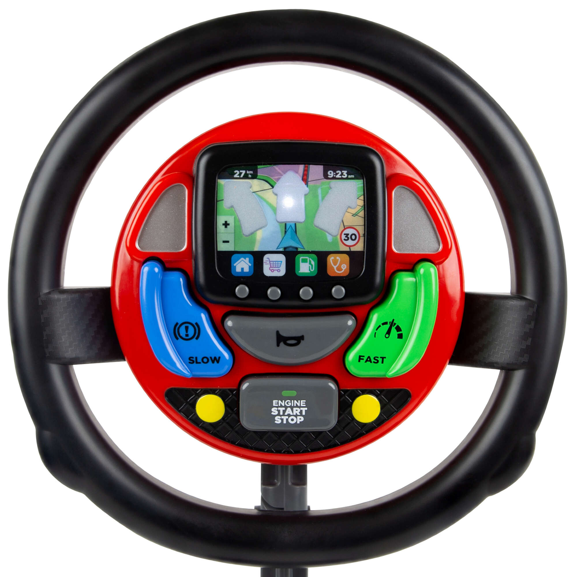 Kierownica GPS Steering Wheel wyposażona została w ponad 40 instrukcji głosowych (angielska wersja językowa), realistyczne dźwięki klaksonu i pracy silnika samochodu, rozpoznawanie skrętów w lewo i w prawo, a także możliwość wyboru celu podróży. Wystarczy, że dziecko wybierze, dokąd chce jechać, a kierownica będzie wydawać głosowe polecenia, podświetlając na ekraniku właściwy kierunek jazdy.
