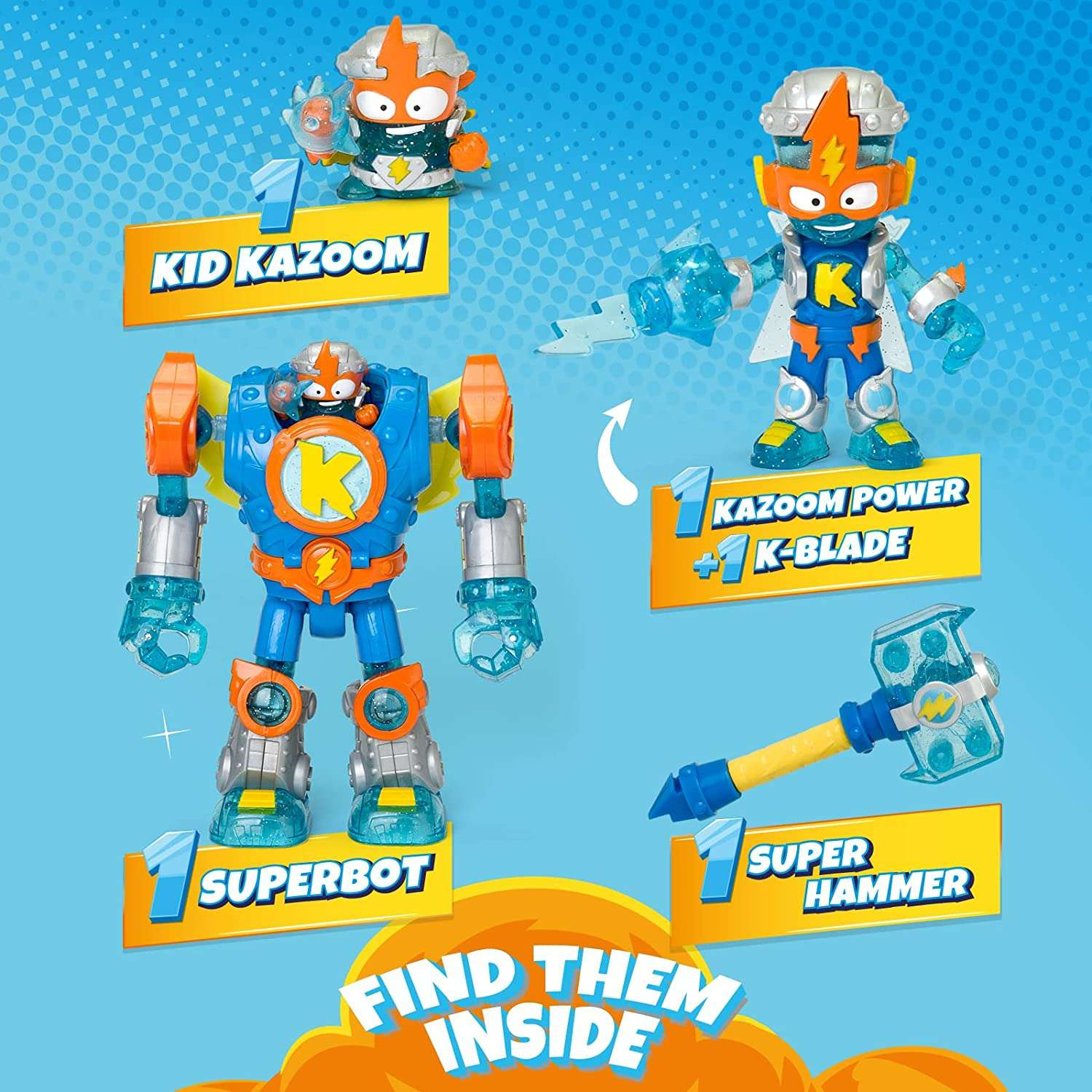 - Superbot Kazoom Power przedstawia bohatera z wieloma punktami artykulacji, które umożliwiają ustawienie figurek na różne sposoby. Figurka Superbota posiada dodatkowo super młot i ma ok. 15 cm wysokości.