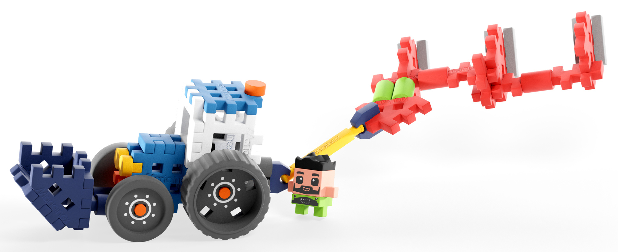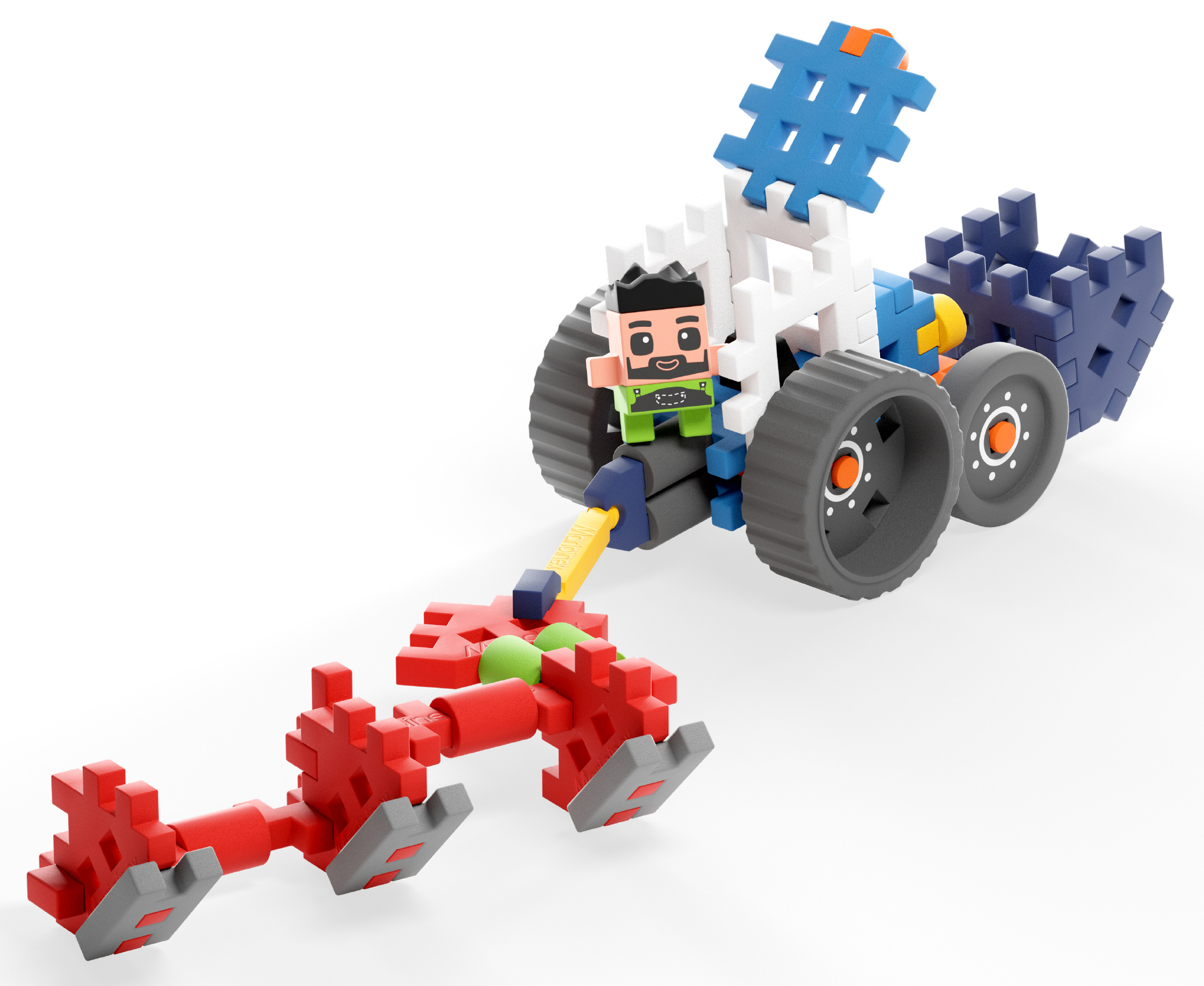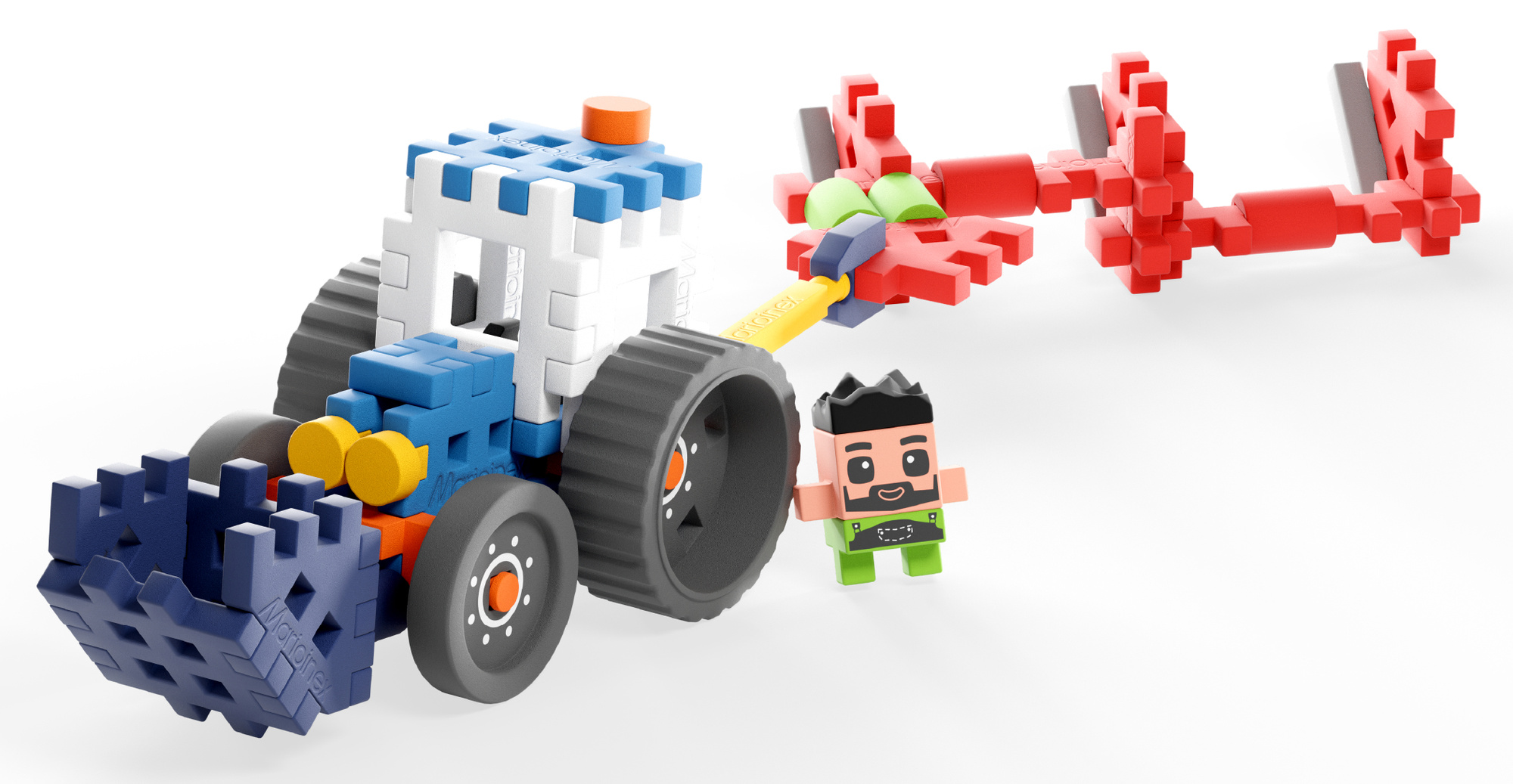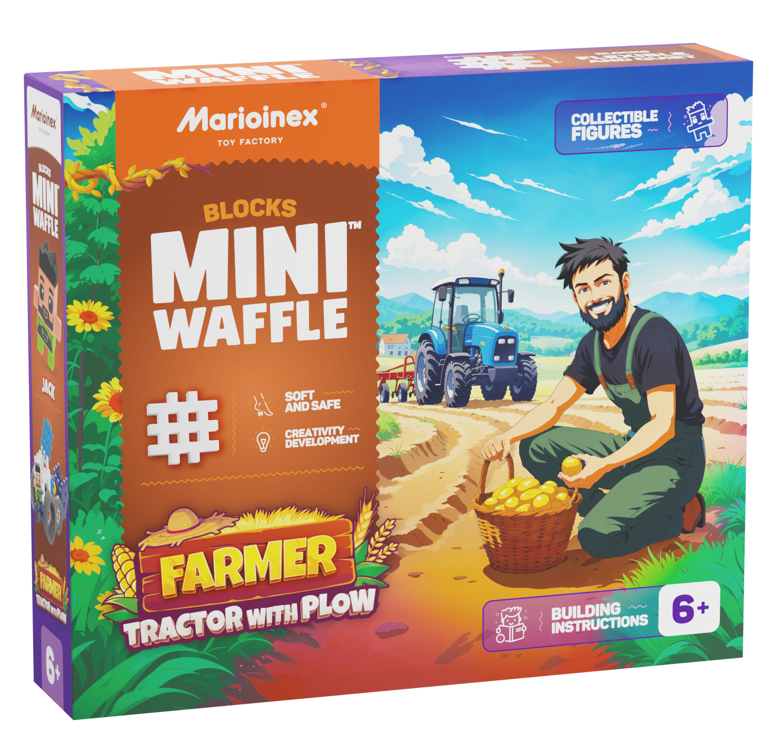Marioinex Mini Waffle Farmer - Traktor z pługiem to połączenie świetnej zabawy i nauki przez działanie - idealny wybór dla małych konstruktorów i miłośników życia na farmie.