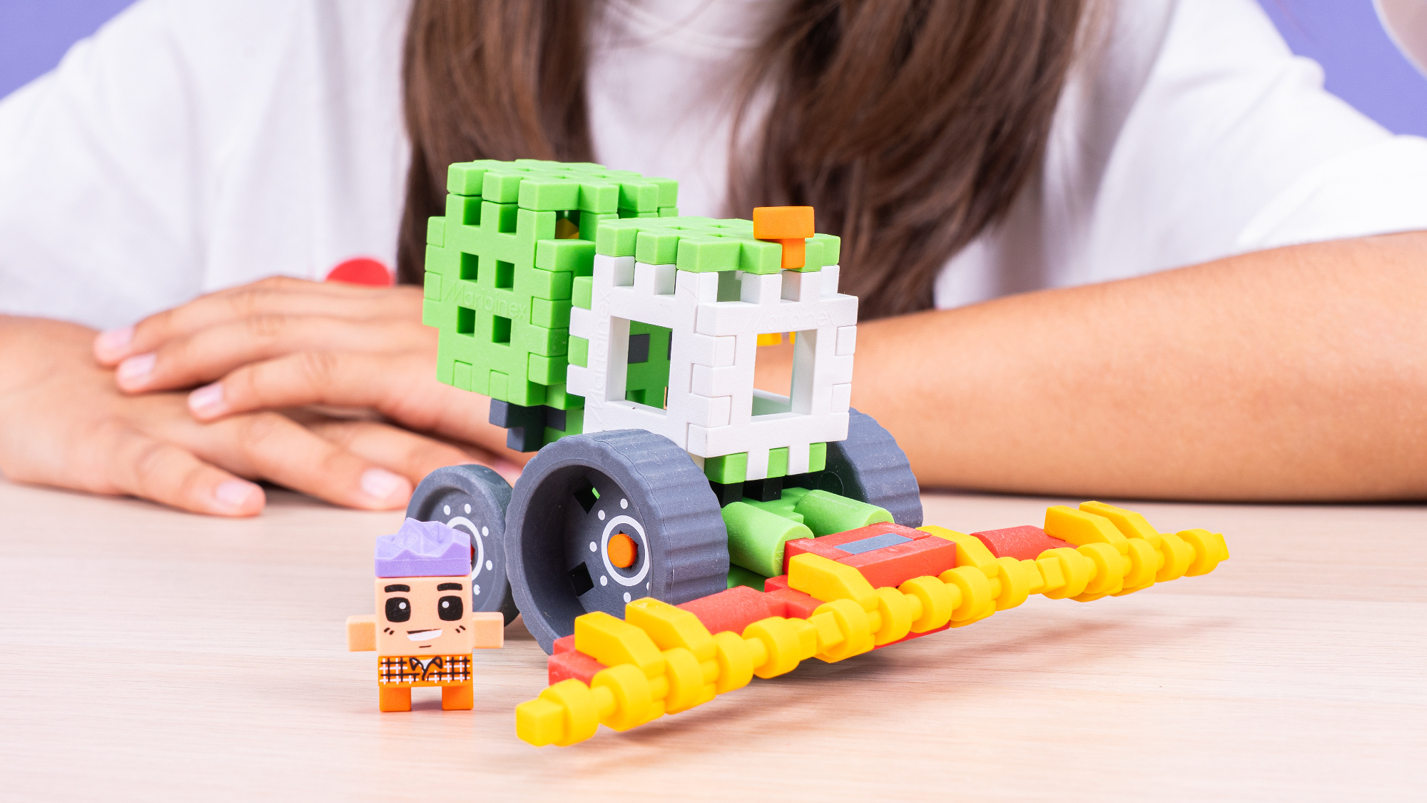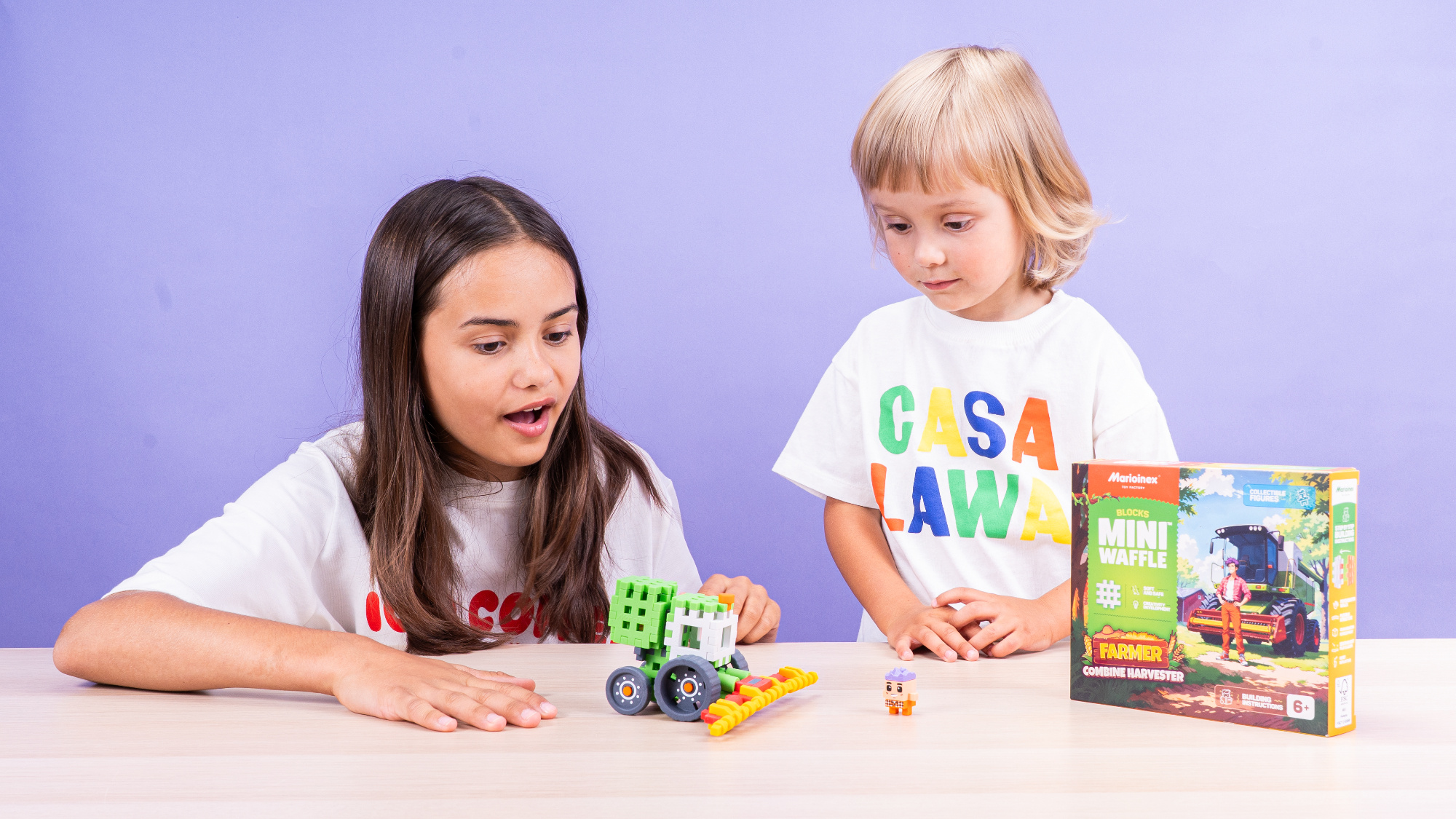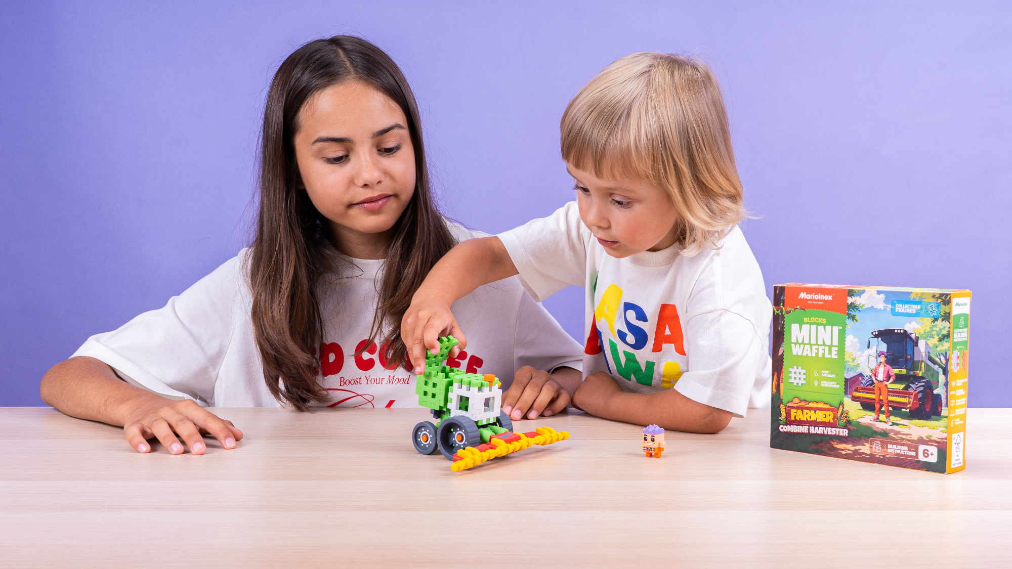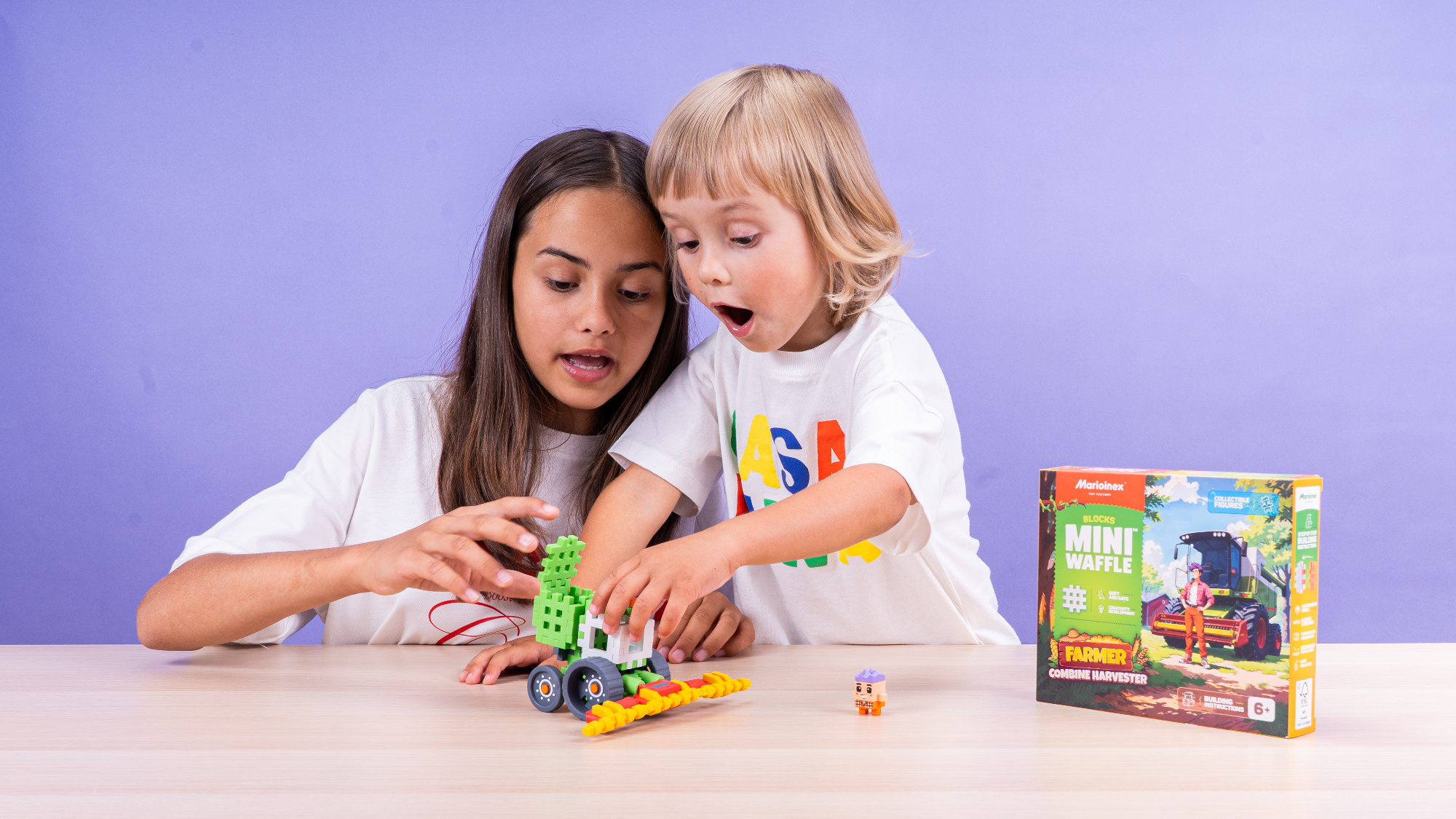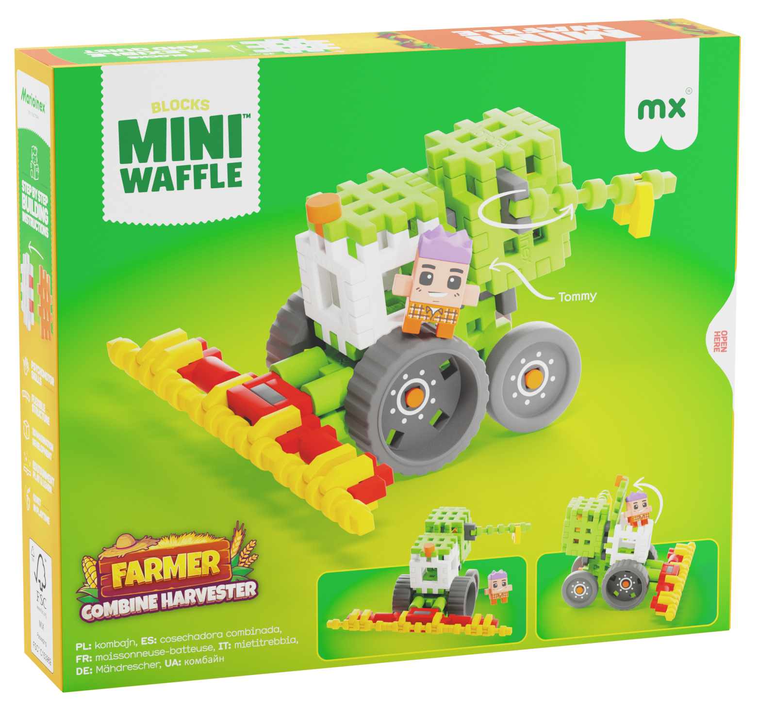 Marioinex Mini Waffle Farmer - Kombajn to połączenie świetnej zabawy i nauki przez działanie - idealny wybór dla małych konstruktorów i miłośników życia na farmie.