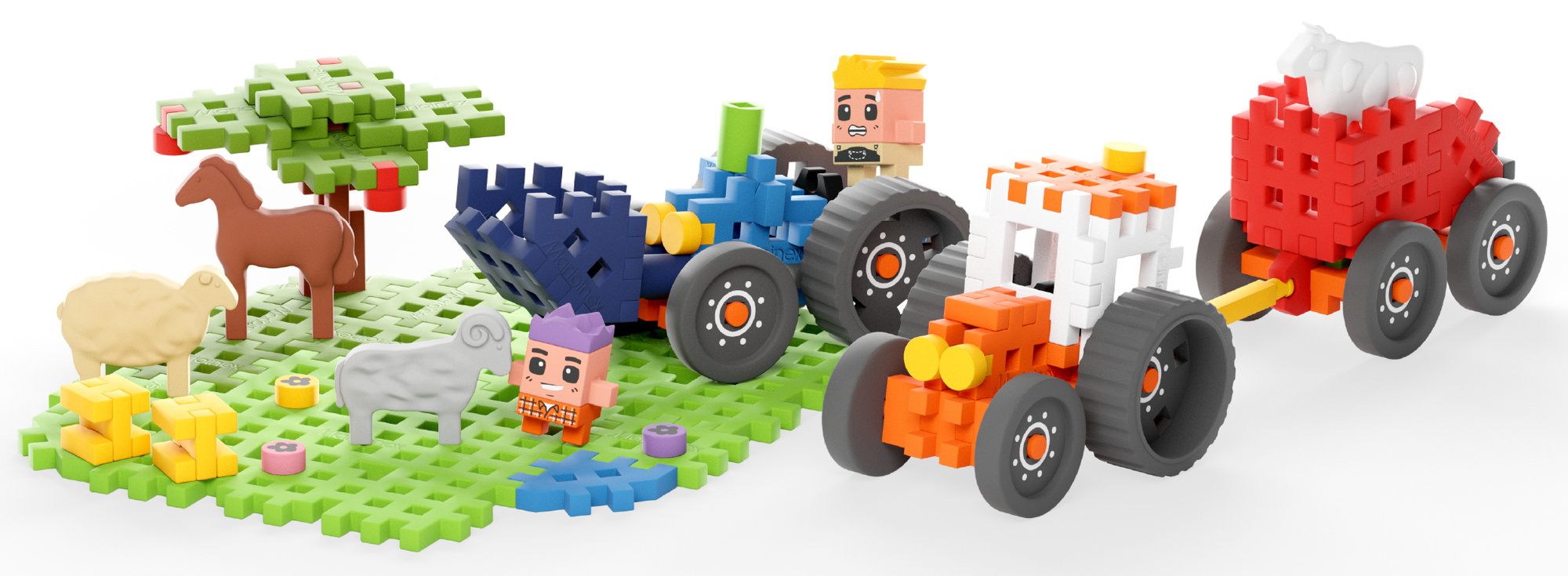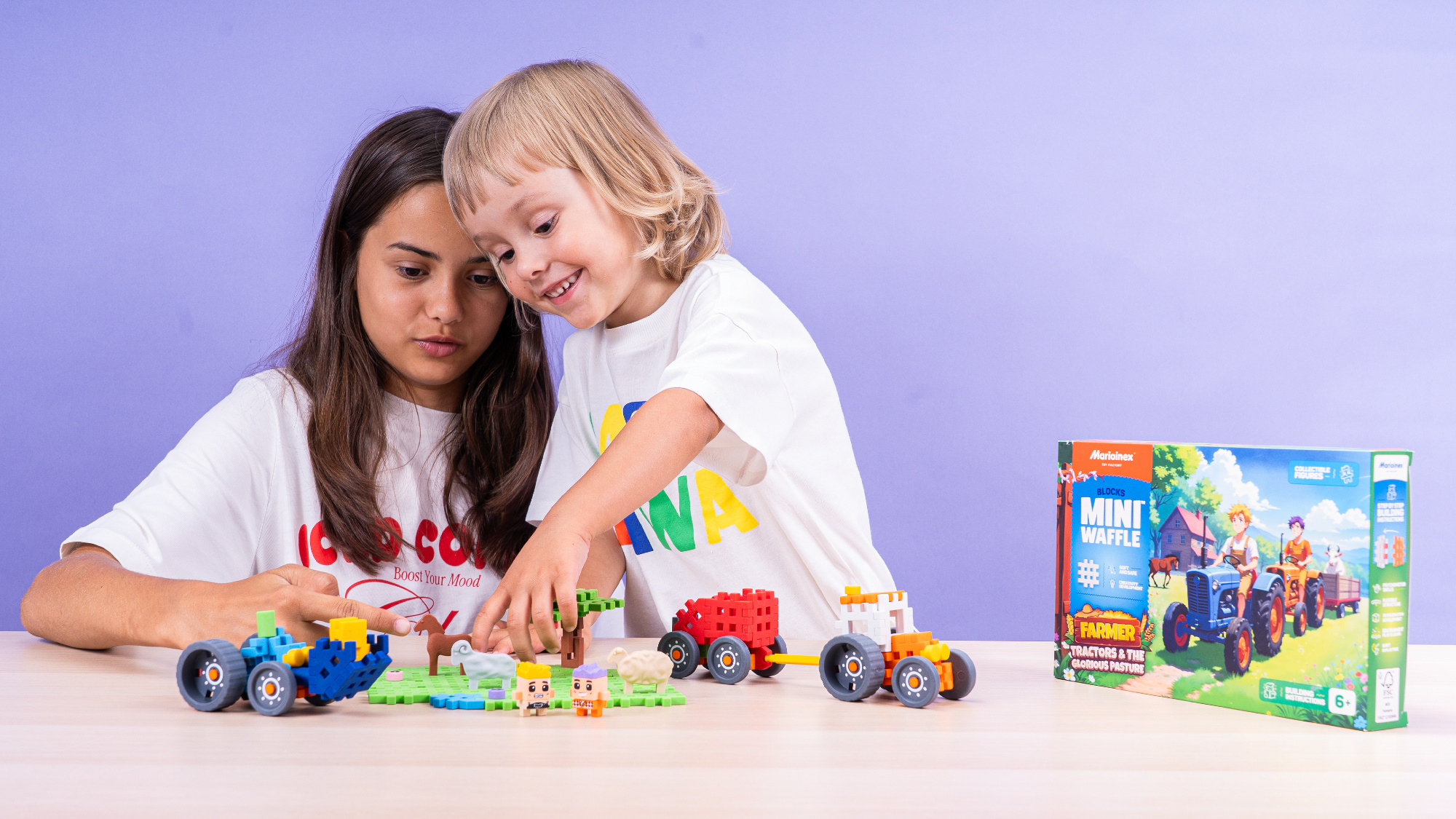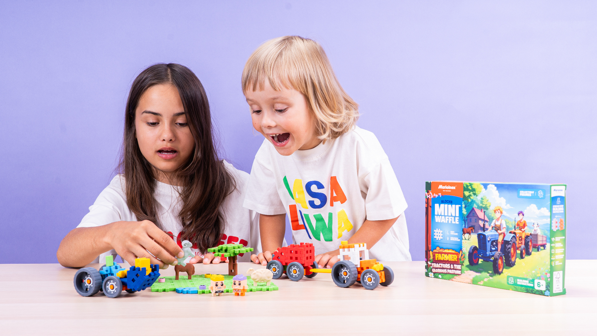 Dzięki klockom Mini Waffle dziecko może nie tylko konstruować, ale też wcielać się w rolę prawdziwego farmera - podejmować decyzje, rozwiązywać problemy i rozwijać swoją wyobraźnię.
