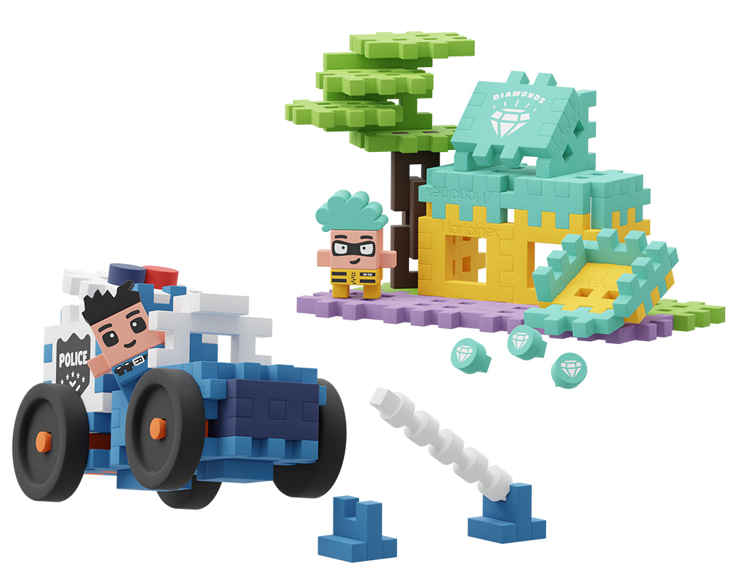 Zbuduj własny sklep jubilerski i policyjny radiowóz, tworząc ekscytującą scenę pościgu w świecie Mini Waffle City! Zestaw to doskonała okazja, by dziecko wcieliło się w bohatera stojącego na straży porządku - lub w przebiegłego rabusia próbującego przechytrzyć policję. Każda zabawa to nowa historia pełna emocji i akcji!