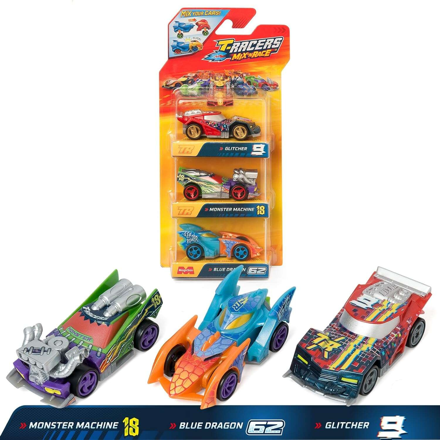 - Kompatybilność z serią MIX’N RACE: Twórz wiele różnych kombinacji, wymieniając części między wszystkimi samochodami z tej serii.