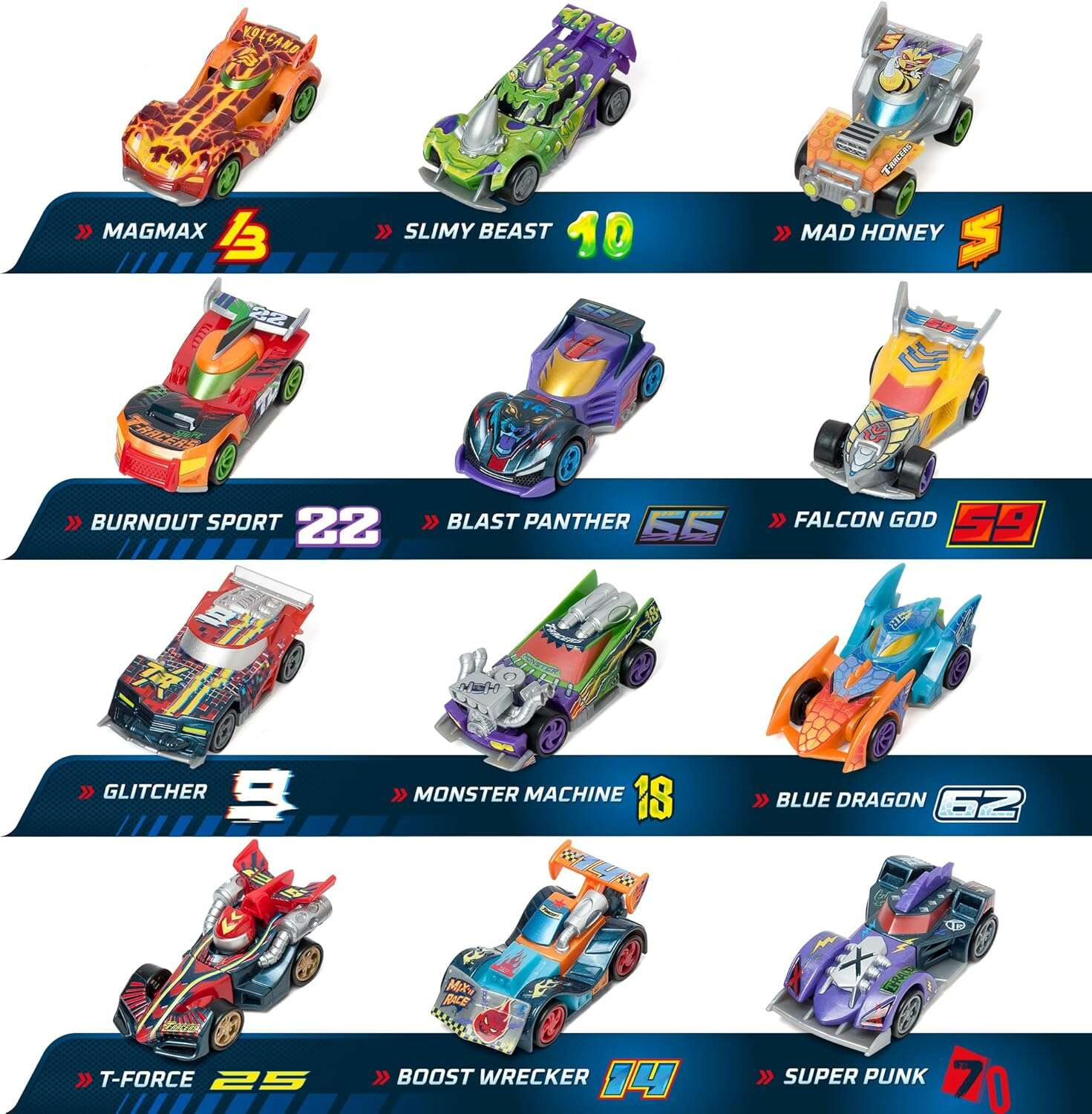 T-Racers to kierowcy wyścigowi. Ich pojazdy można ze sobą mieszać! Każdy samochód składa się z części, które można łączyć ze sobą, co daje wiele możliwości.