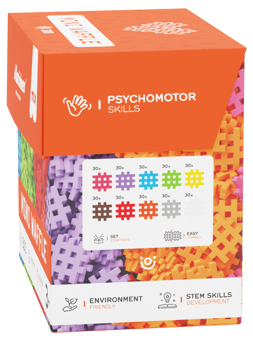 Zestaw klocków Mini Waffle to nie tylko świetna zabawa, ale też nauka poprzez działanie - rozwija wyobraźnię, zdolności manualne i uczy logicznego myślenia.