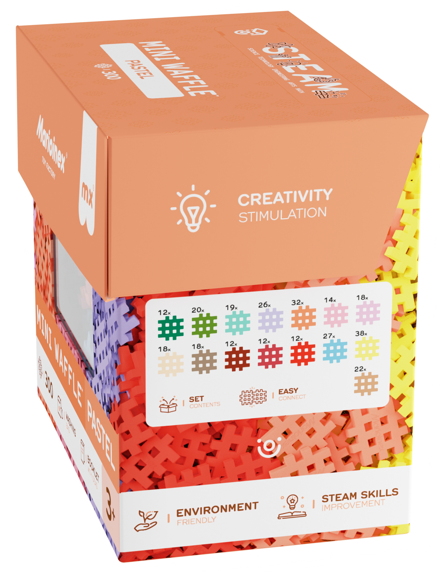 Klocki konstrukcyjne Mini Waffle zestaw w pastelowych kolorach 300 elementów Marioinex