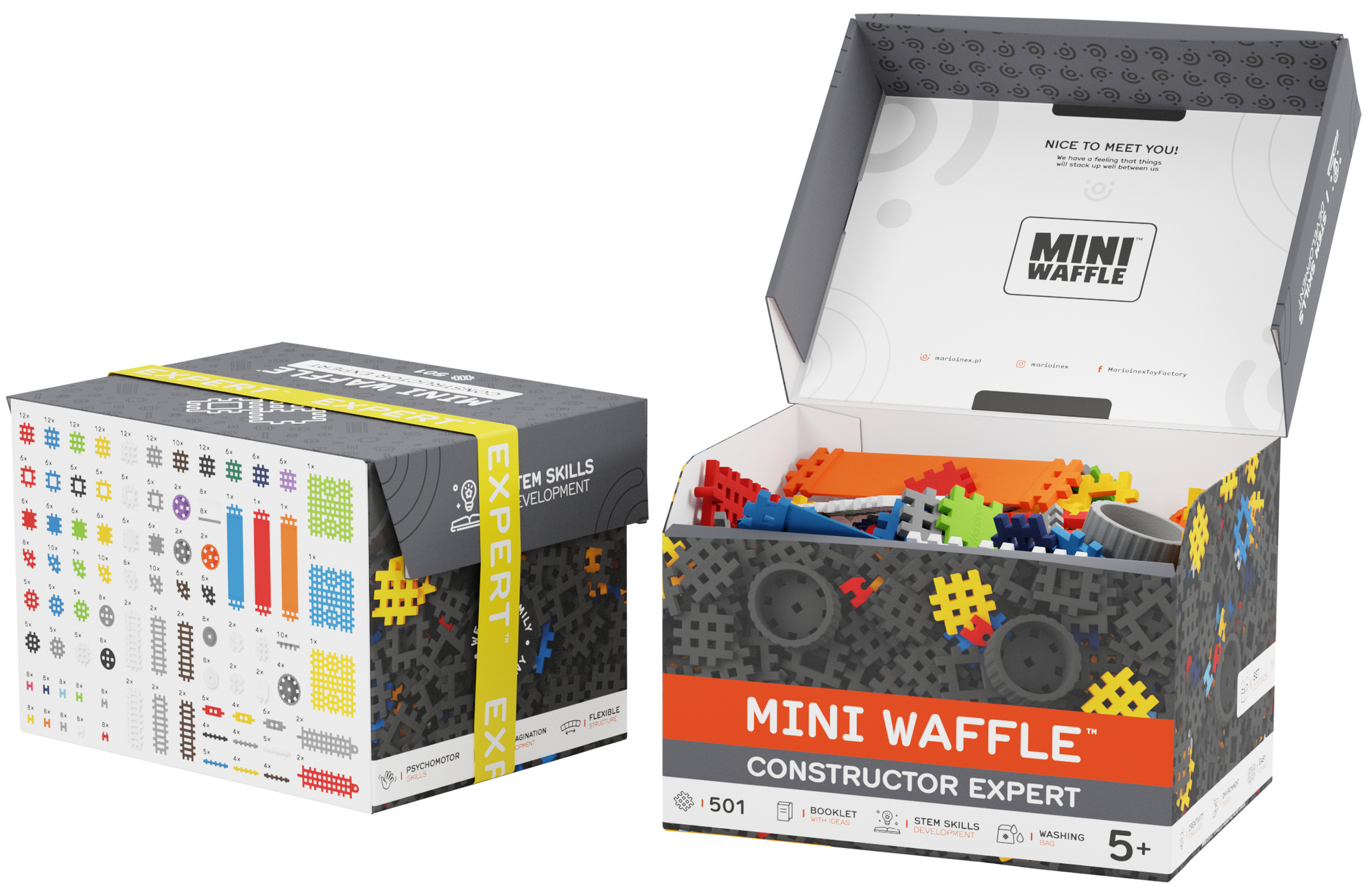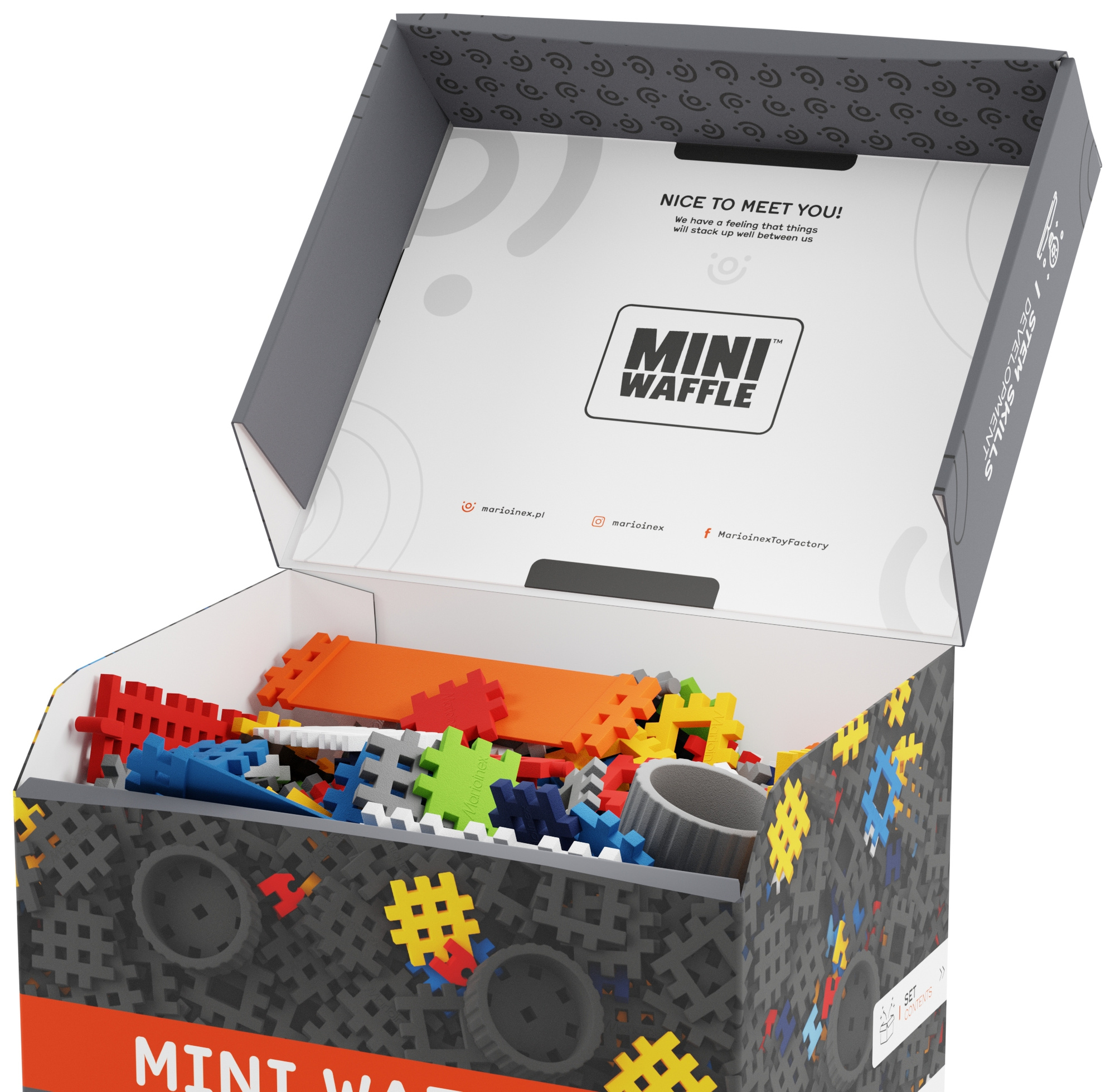 Marioinex to polska marka klocków konstrukcyjnych, znana z innowacyjnych zestawów Mini Waffle, które rozwijają kreatywność, zdolności manualne i wyobraźnię dzieci poprzez zabawę w budowanie.