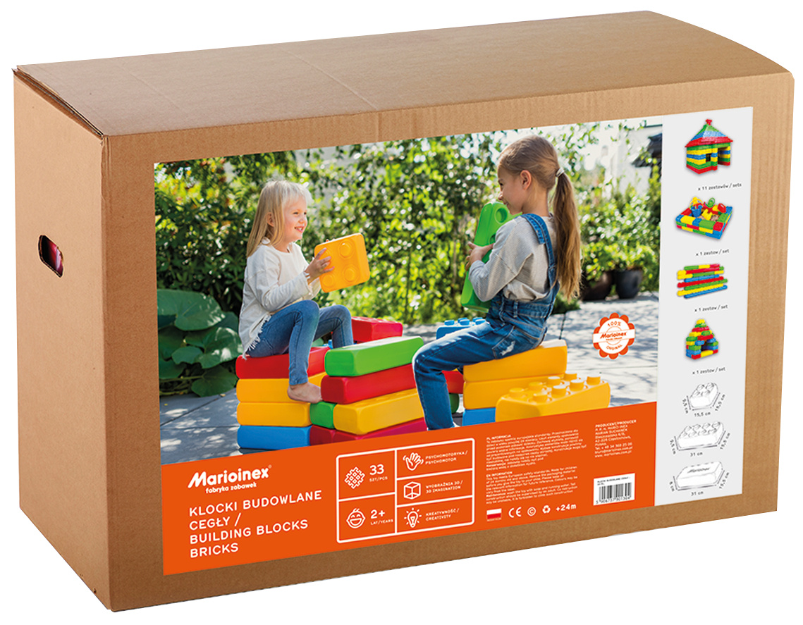 Klocki Budowlane Cegły to zestaw, który pozwala dzieciom konstruować nieograniczone budowle i przestrzenne konstrukcje, rozwijając przy tym kreatywność i zdolności manualne w zupełnie bezpieczny sposób.