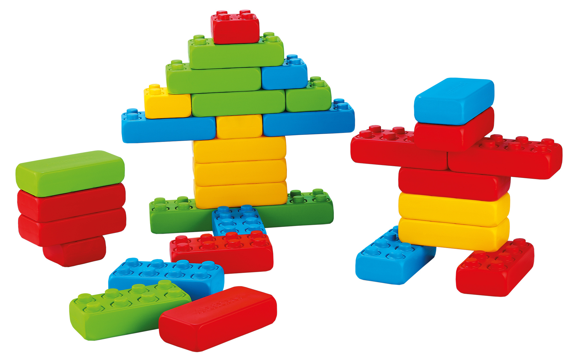 Klocki są trwałe, elastyczne i bezpieczne, dzięki czemu dzieci mogą po nich chodzić, a nawet testować ich wytrzymałość podczas zabawy w budowanie i eksperymentowanie.