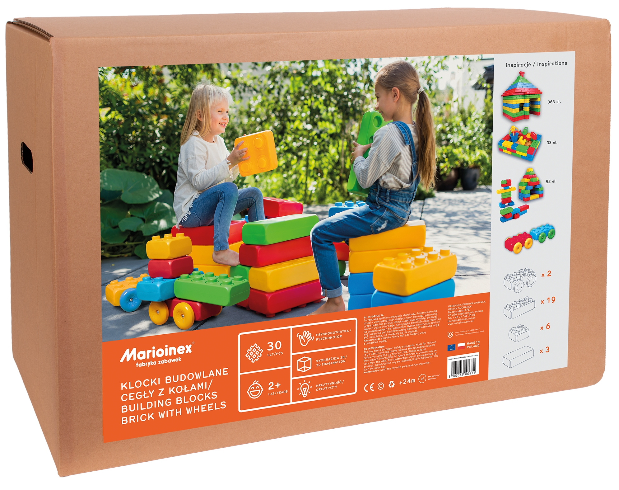 Klocki konstrukcyjne Cegły zestaw z kołami 30 elementów Marioinex