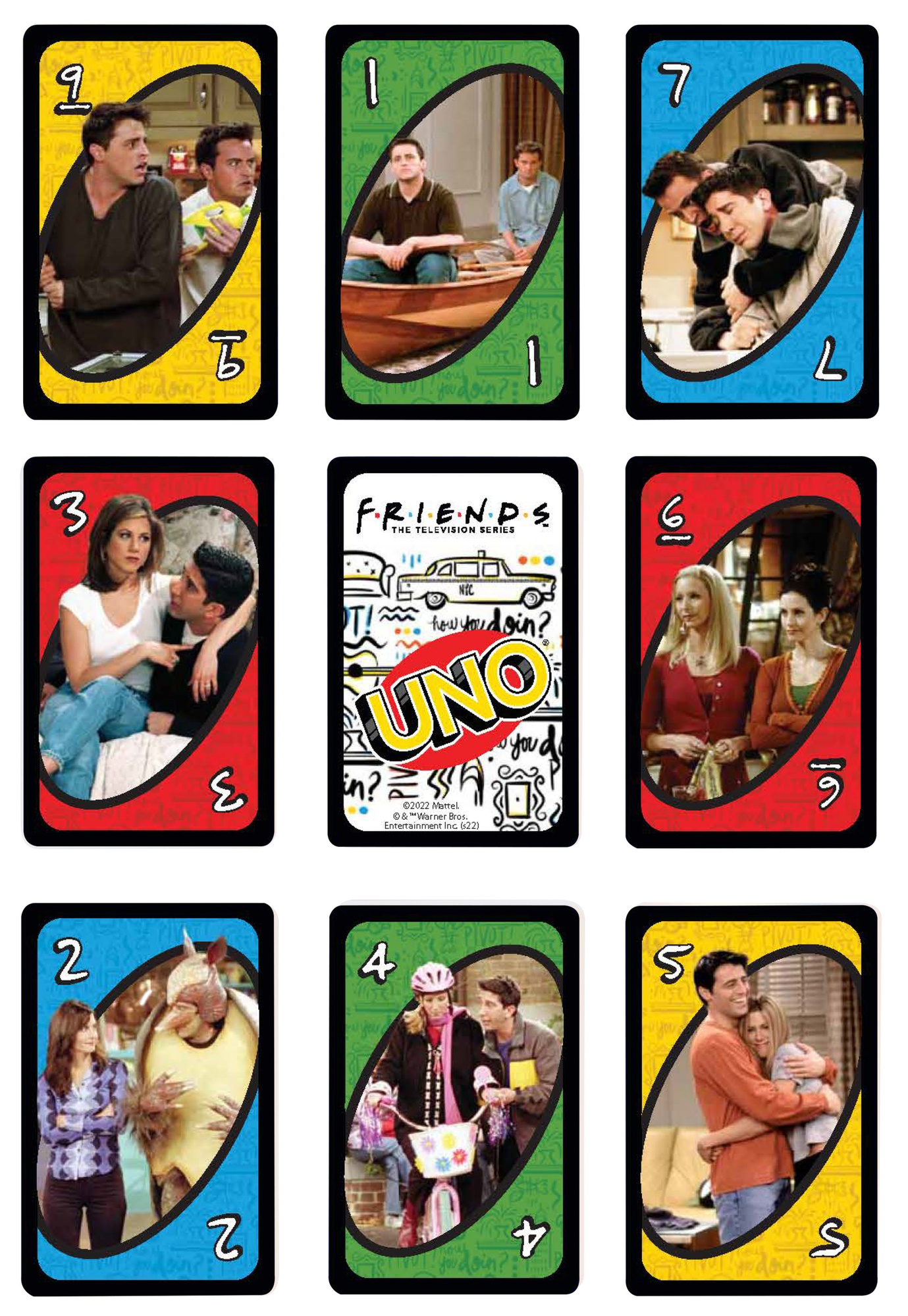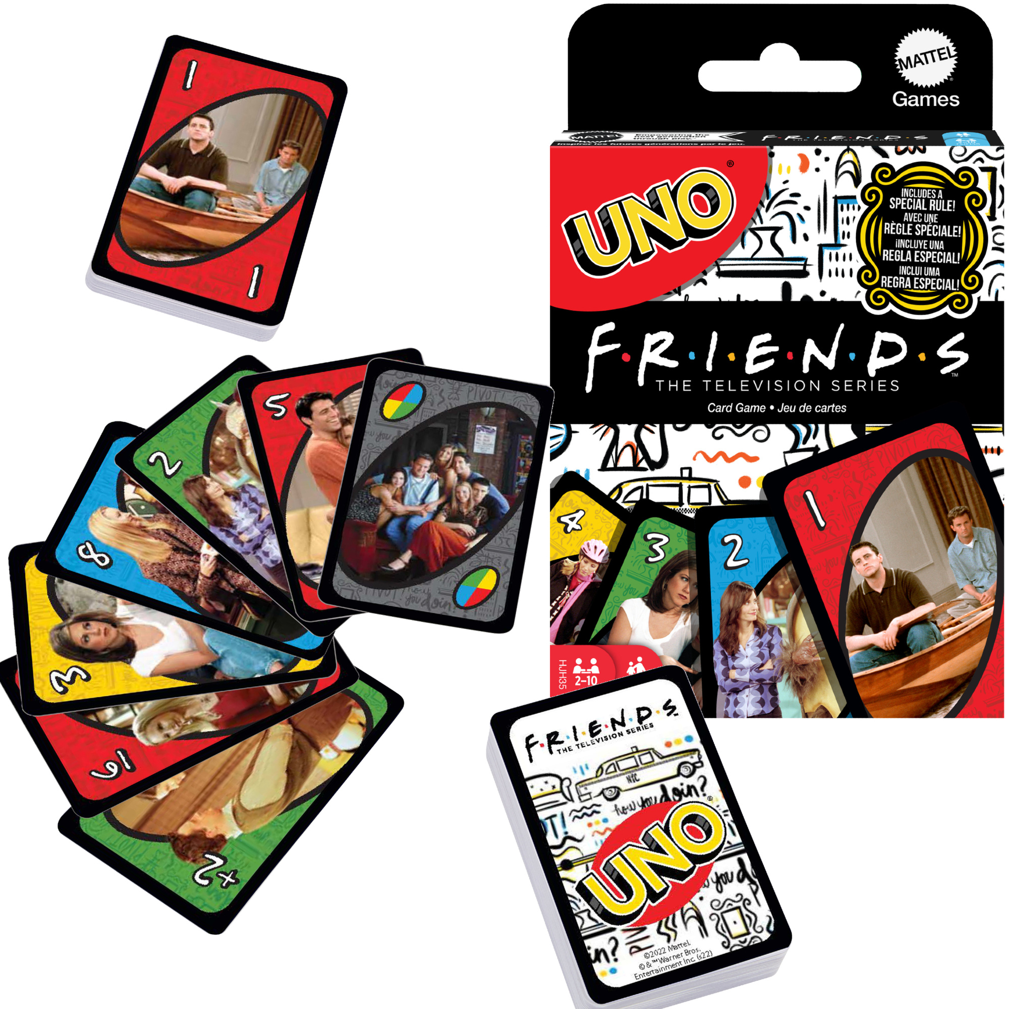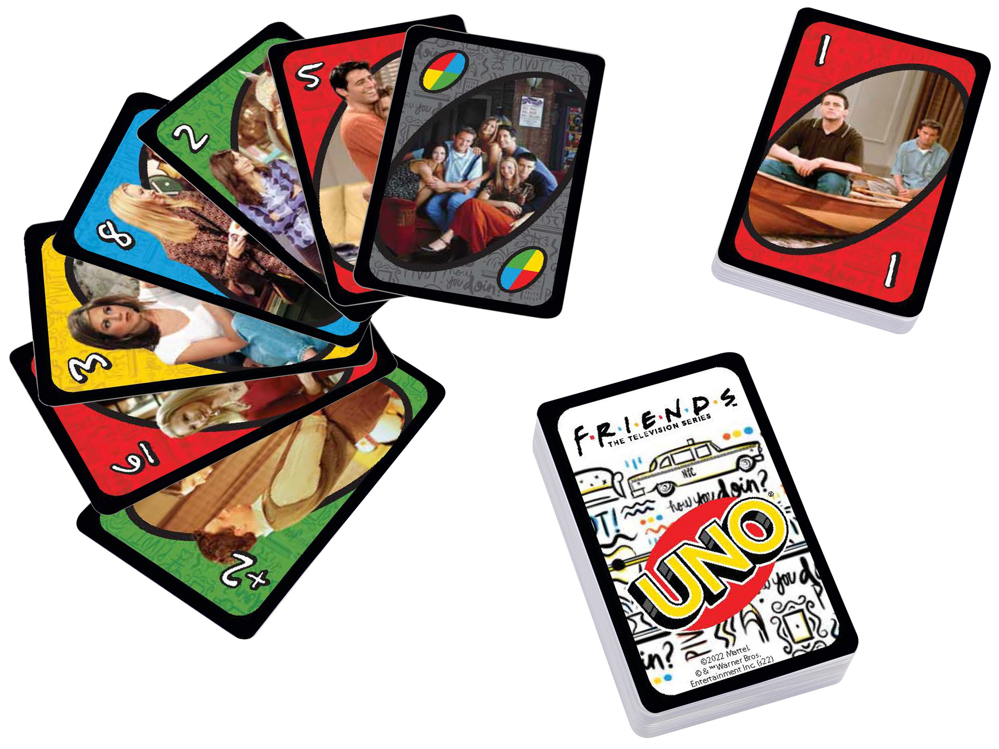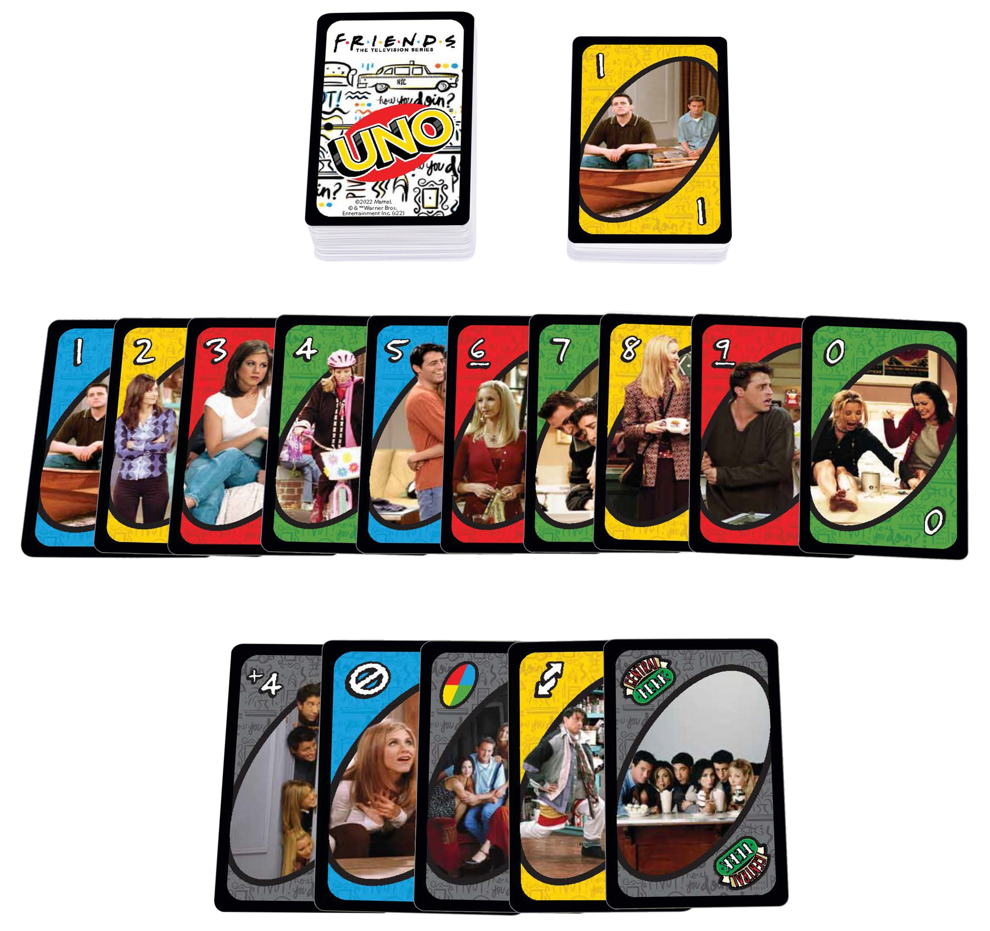 - UNO w wyjątkowej odsłonie dla fanów kultowego serialu „Przyjaciele”! Ta edycja popularnej gry karcianej łączy klasyczną rozgrywkę z urokiem bohaterów z ekranu. Gracze dopasowują kolory i numery, starając się jak najszybciej pozbyć swoich kart.