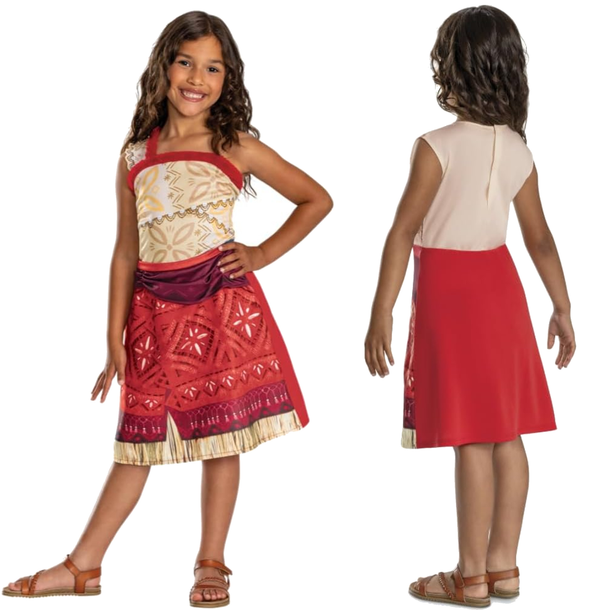 - Kostium dla dzieci Strój karnawałowy Disney strój Vaiana Moana 2 S/P 5-6 lat strój zawiera sukienkę czerwono - kremową w ciekawy indiański wzór, wzrost dziecka 109-123 cm