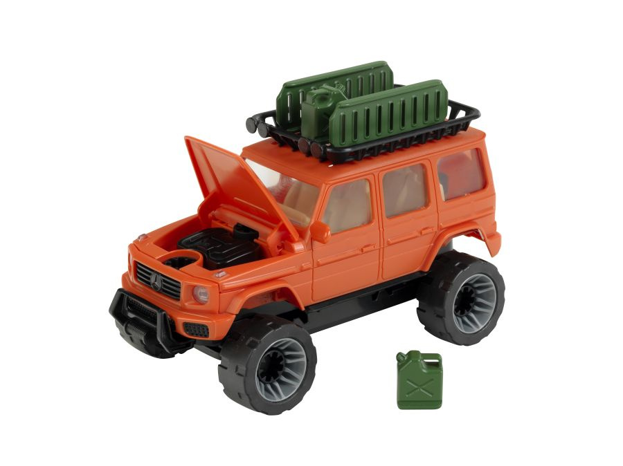 Dziecko samodzielnie składa samochód i może nim jeździć, co daje satysfakcję i angażuje wyobraźnię. Ruchome elementy i otwierane maska i bagażnik dodają zabawie realizmu. Zestaw poza podstawowymi elementami do złożenia pojazdu zawiera akcesoria- skrzynia dachowa i kanister umożliwiają kreatywne scenariusze zabaw, np. wyprawy terenowe i przygody „off‑road”.