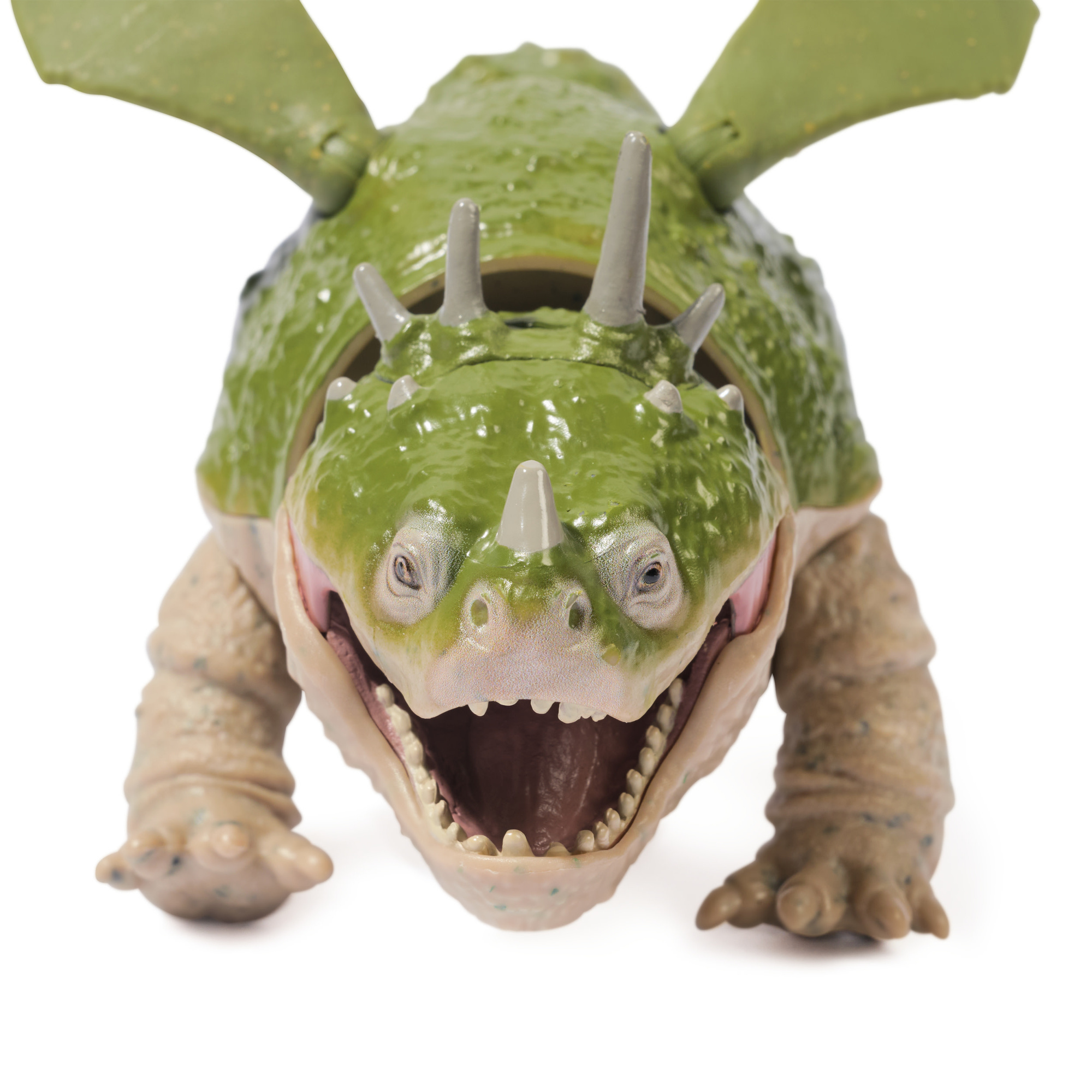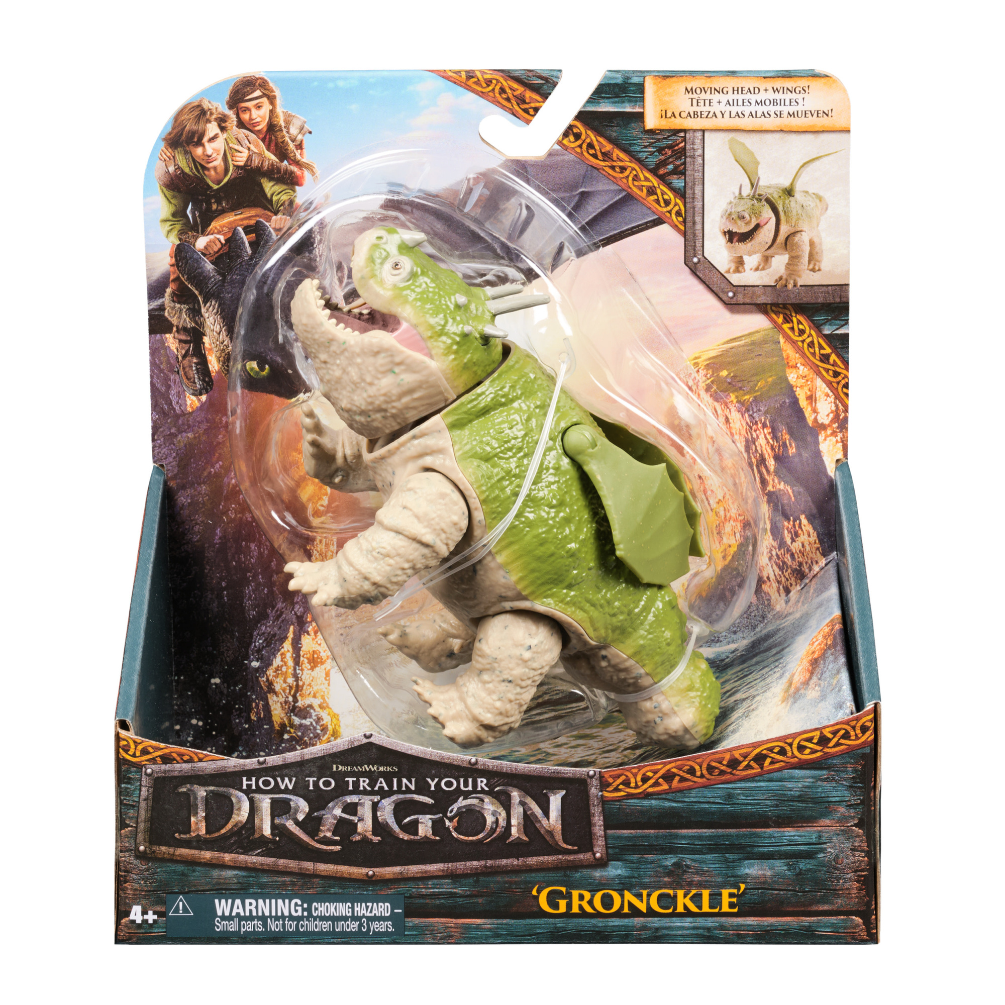 Gronckle to masywny, pancerzowy smok o kamienistej łusce i krótkich, ale potężnych skrzydłach, który mimo swych gabarytów i siły jest łagodny i przyjazny wobec sojuszników. Jego specyficzną zdolnością jest wyrzucanie gorących, topniejących kamieni, co czyni go cenionym towarzyszem w boju i obronie Berk. Ten masywny smok, znany ze swojej niesamowitej siły i pancernej łuski, został wiernie odwzorowany z dbałością o każdy detal.