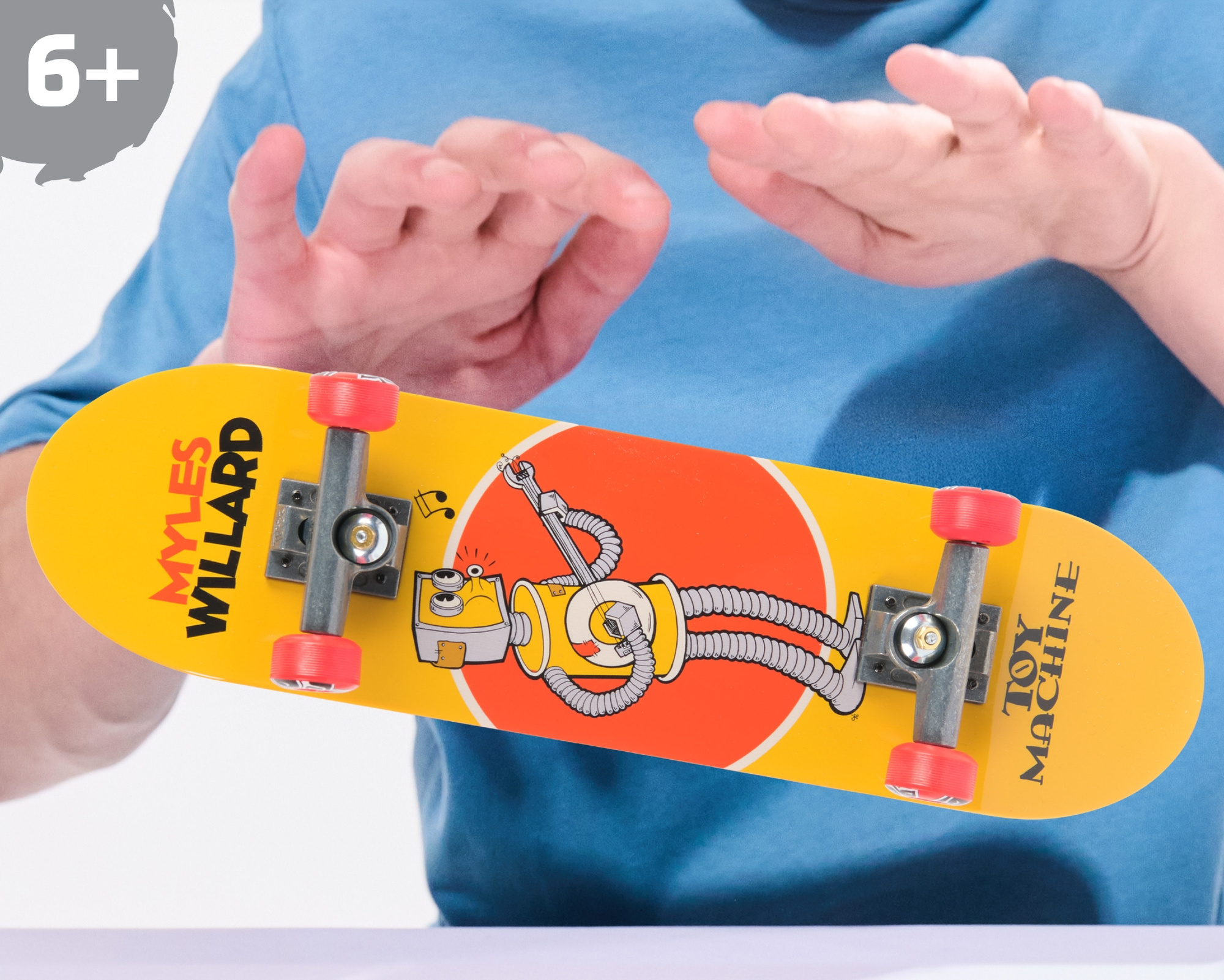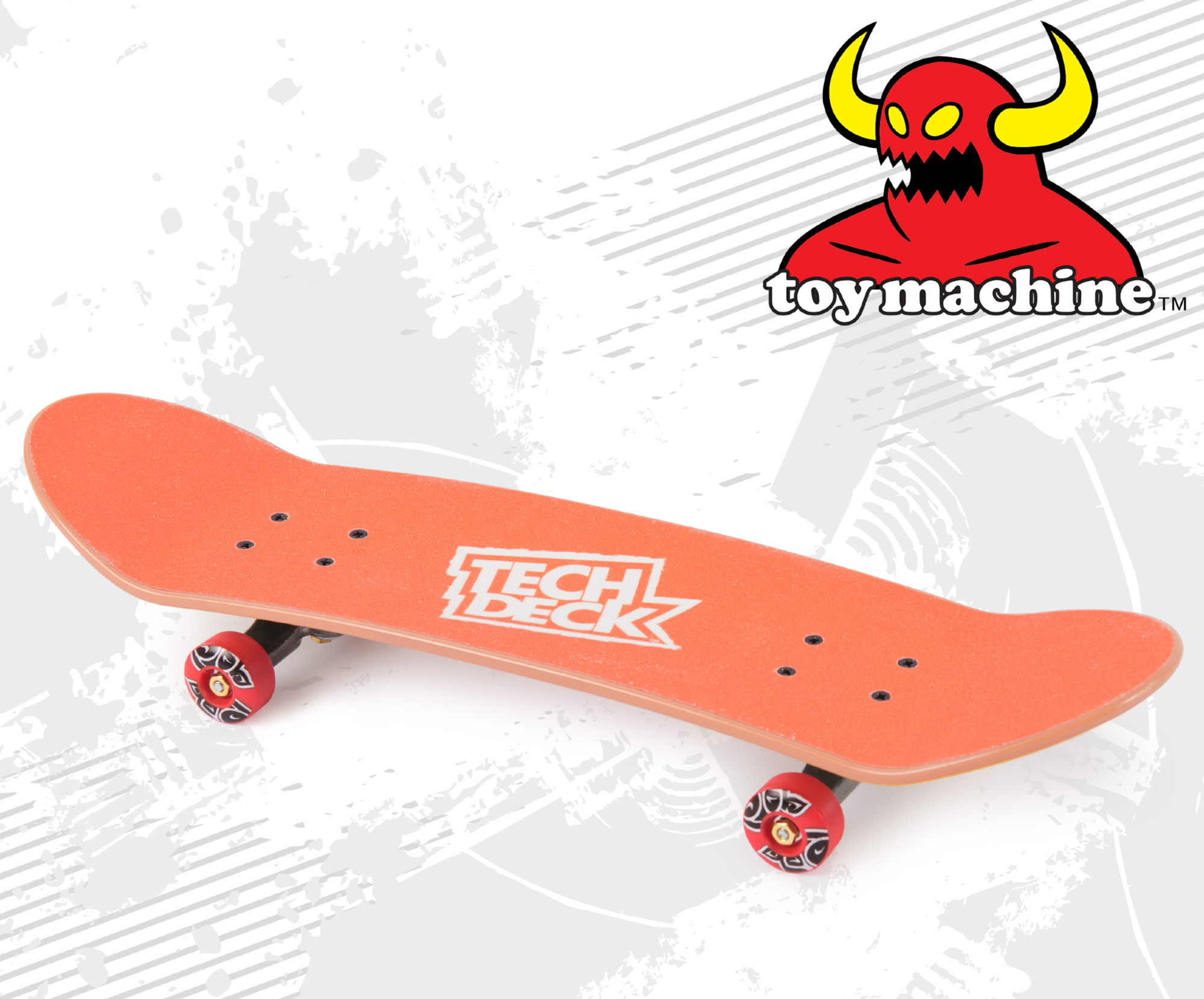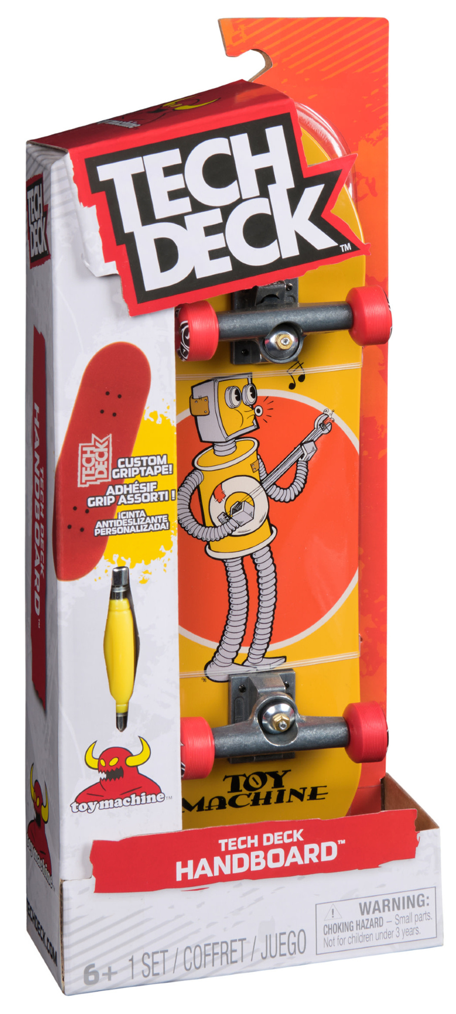 - Duża deskorolka handboard maxi Toy Machine od Tech Deck. W opakowaniu znajduje się złożona deskorolka Tech Deck z ilustracją i 1 narzędzie do montażu.