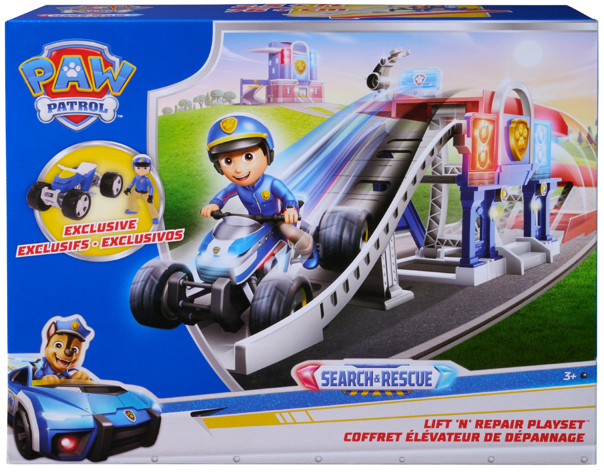 Zestaw zawiera ekskluzywną figurkę Rydera w stroju Search & Rescue oraz jego niezawodny pojazd ATV. Dzieci mogą wjechać pojazdem na platformę, podnieść go za pomocą podnośnika nożycowego do stacji naprawczej, wykonać „naprawy” przy użyciu ramienia z chwytakiem, a następnie zjechać rampą prosto do kolejnej akcji ratunkowej.
