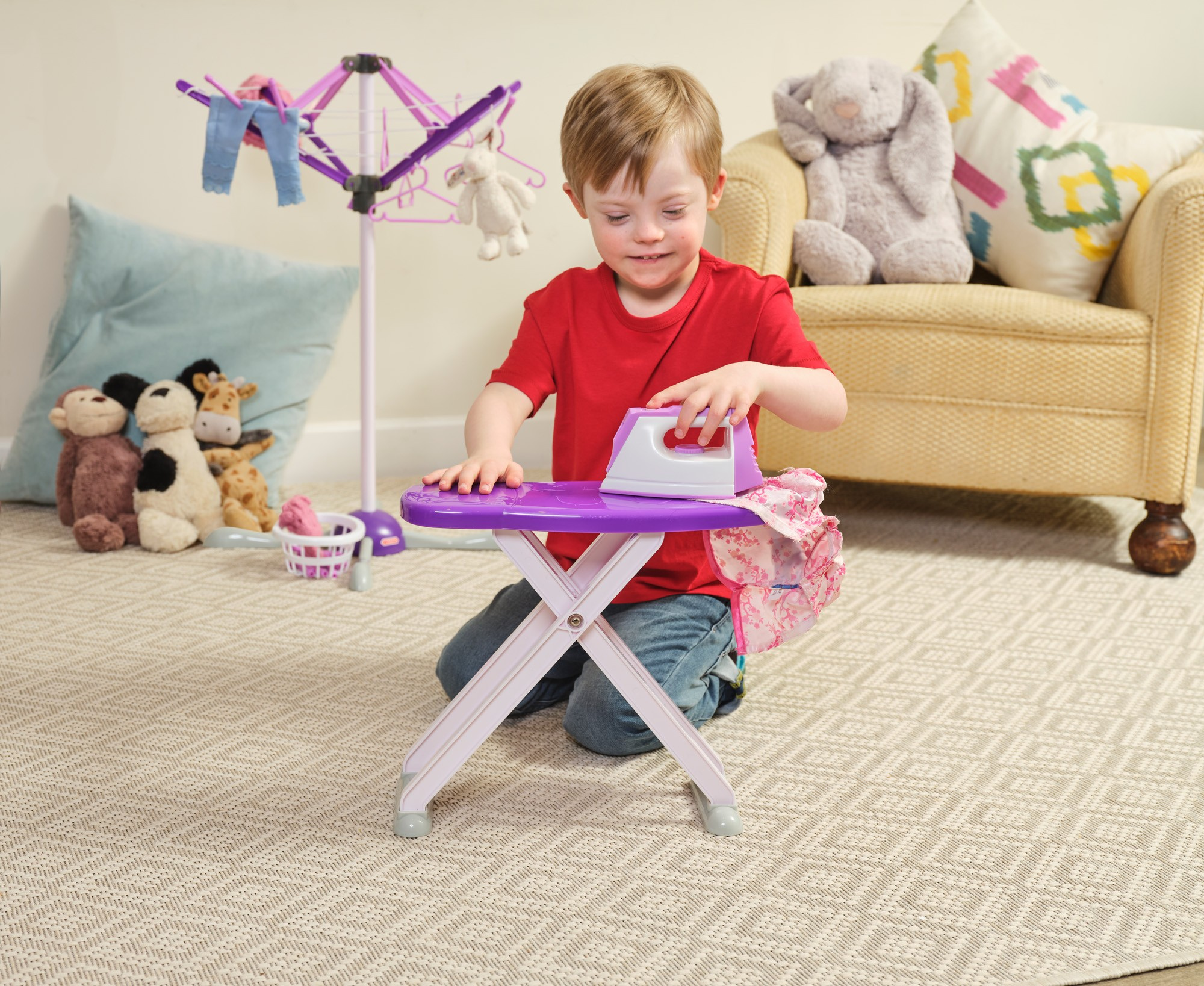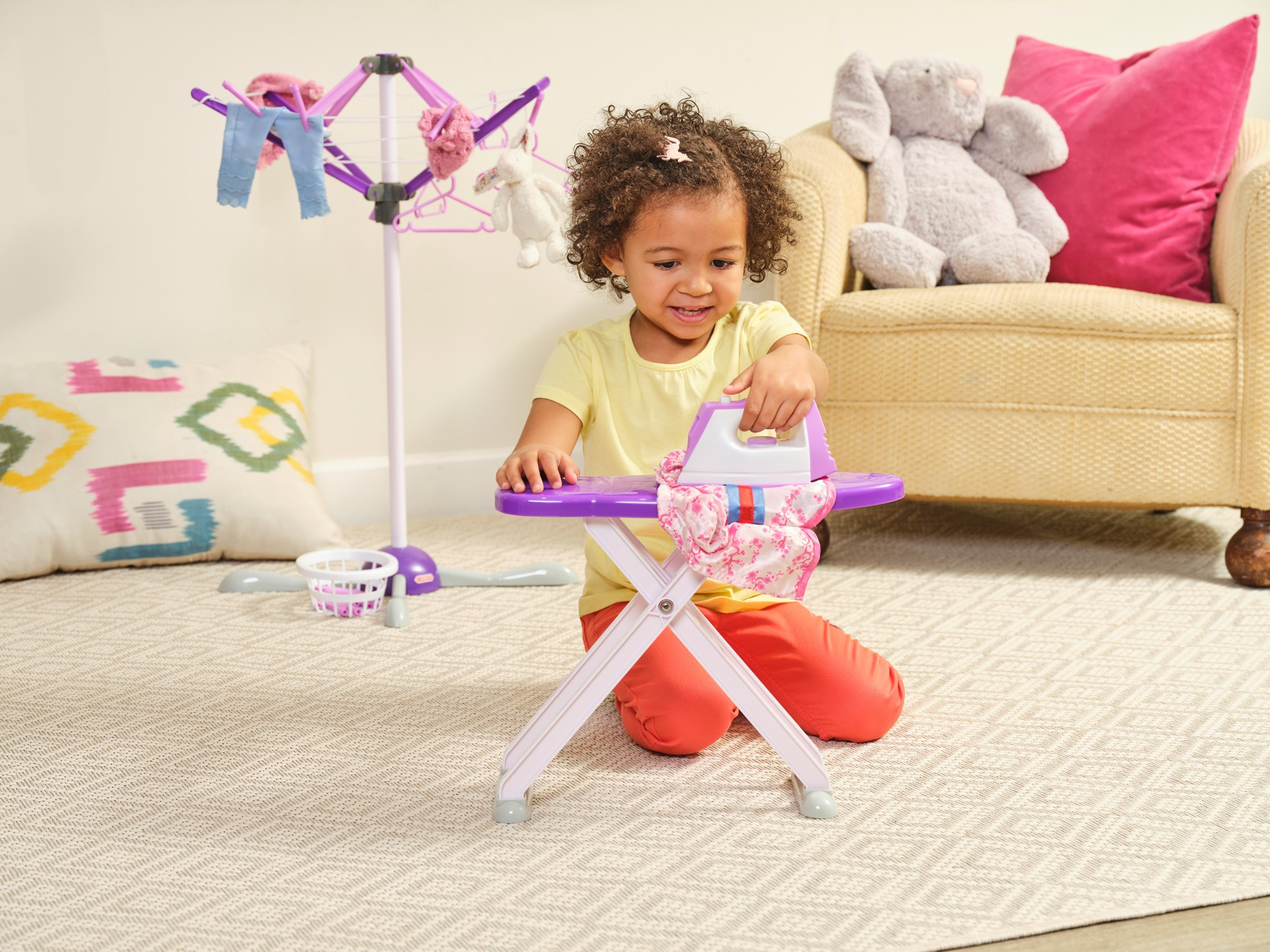 Ten wspaniały i niezwykle stylowy zestaw zachwyci każde dziecko, które uwielbia zabawę w dom lub naśladowanie rodziców podczas wykonywania codziennych czynności.humbi_pl Dzięki temu zestawowi dziecko nauczy się, jak wieszać pranie do suszenia, jak je prasować, a następnie jak umieszczać ubrania na wieszaczkach i suszarce. Solidne wykonanie i dbałość o szczegóły gwarantują, że zestaw ten będzie służyć dzieciom przez długi czas.