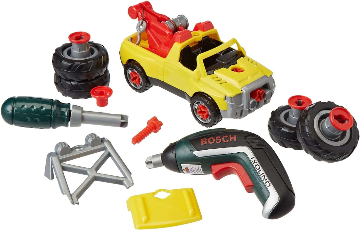 - zabawkowej wkrętarki Bosch Ixolino II działającej na baterie, wyposażonej w obroty w lewą i prawą stronę oraz efekt dźwiękowy imitujący pracę faktycznego urządzenia;