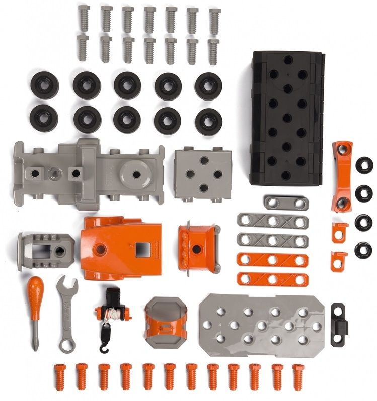 Walizka na narzędzia jest w kolorze czarnym, zdobi ją pomarańczowe logo Black and Decker, pomarańczowa rączka do przenoszenia i pomarańczowy zatrzask. Rączkę walizki, mocowaną śrubami, można odczepić. W walizce znajdują się elementy potrzebne do skonstruowania dźwigu z obracanym, ruchomym ramieniem, oraz narzędzia. Wśród narzędzi znajduje się lekki, plastikowy śrubokręt, klucz francuski oraz śruby i nakrętki.