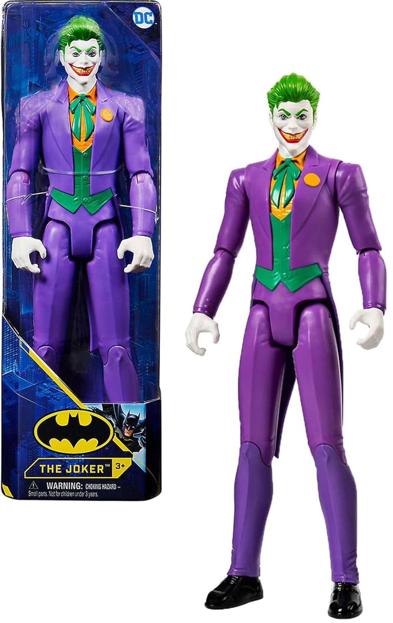 Figurka przedstawia Jokera w dobrze znanym wszystkim fanom fioletowym garniturze. Nie zabrakło również kultowych już elementów - zielonych włosów i czerwonych ust wykrzywionych w szerokim uśmiechu. Zabawka posiada wiele ruchomych elementów - obracaną głowę, ręce oraz nogi. Figurka ma około 30 centymetrów wysokości. Pochodzi z pierwszej edycji figurek od Spin Master na licencji DC Comics.
