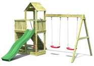 Plac zabaw drewniany duży Lucas domek, zjeżdżalnia, 2x huśtawka